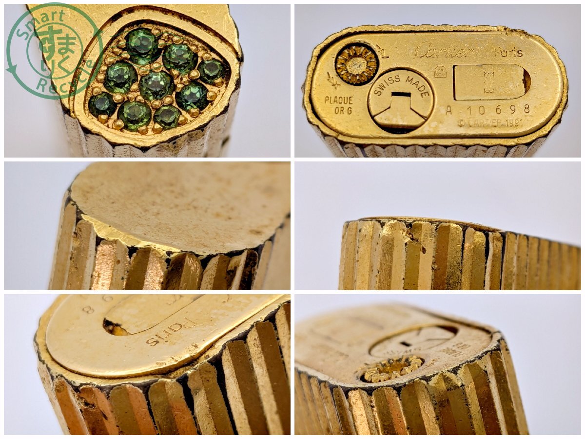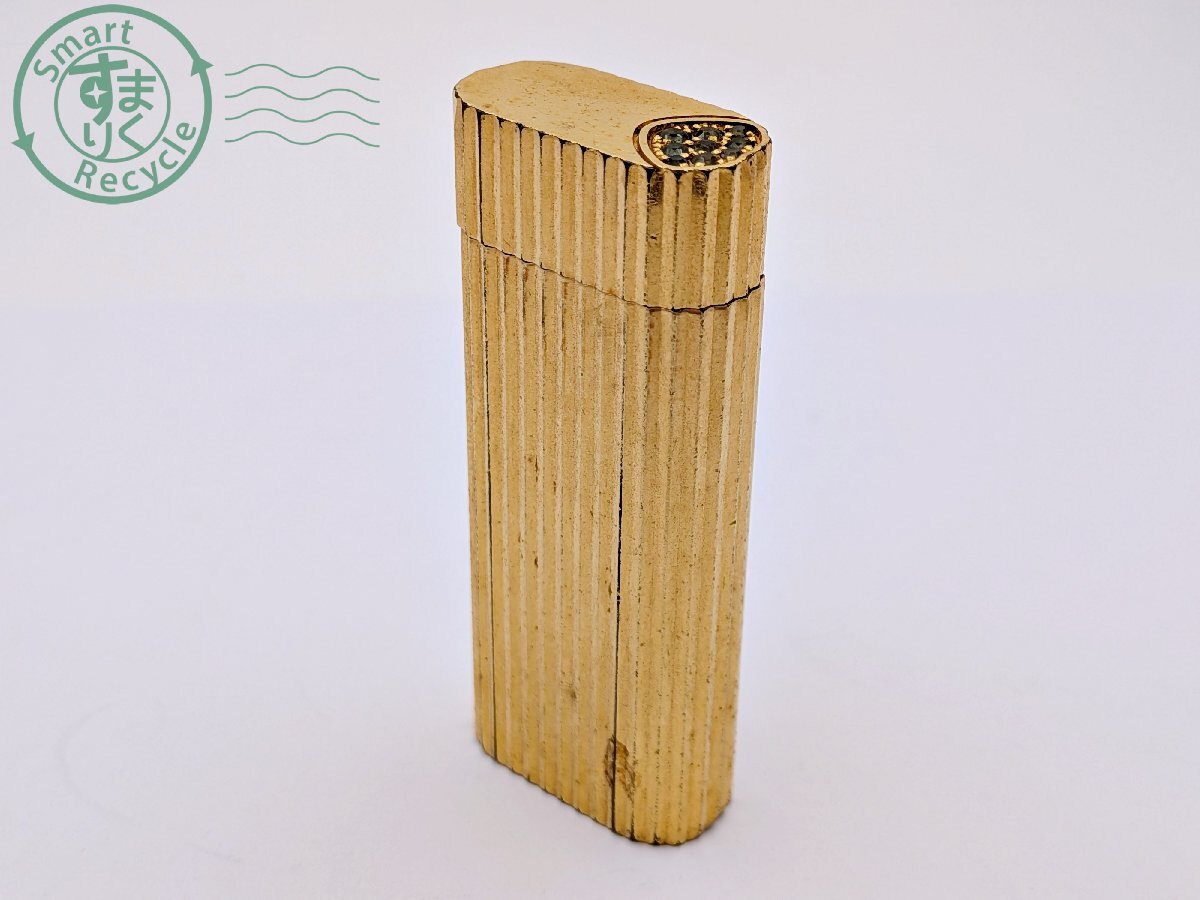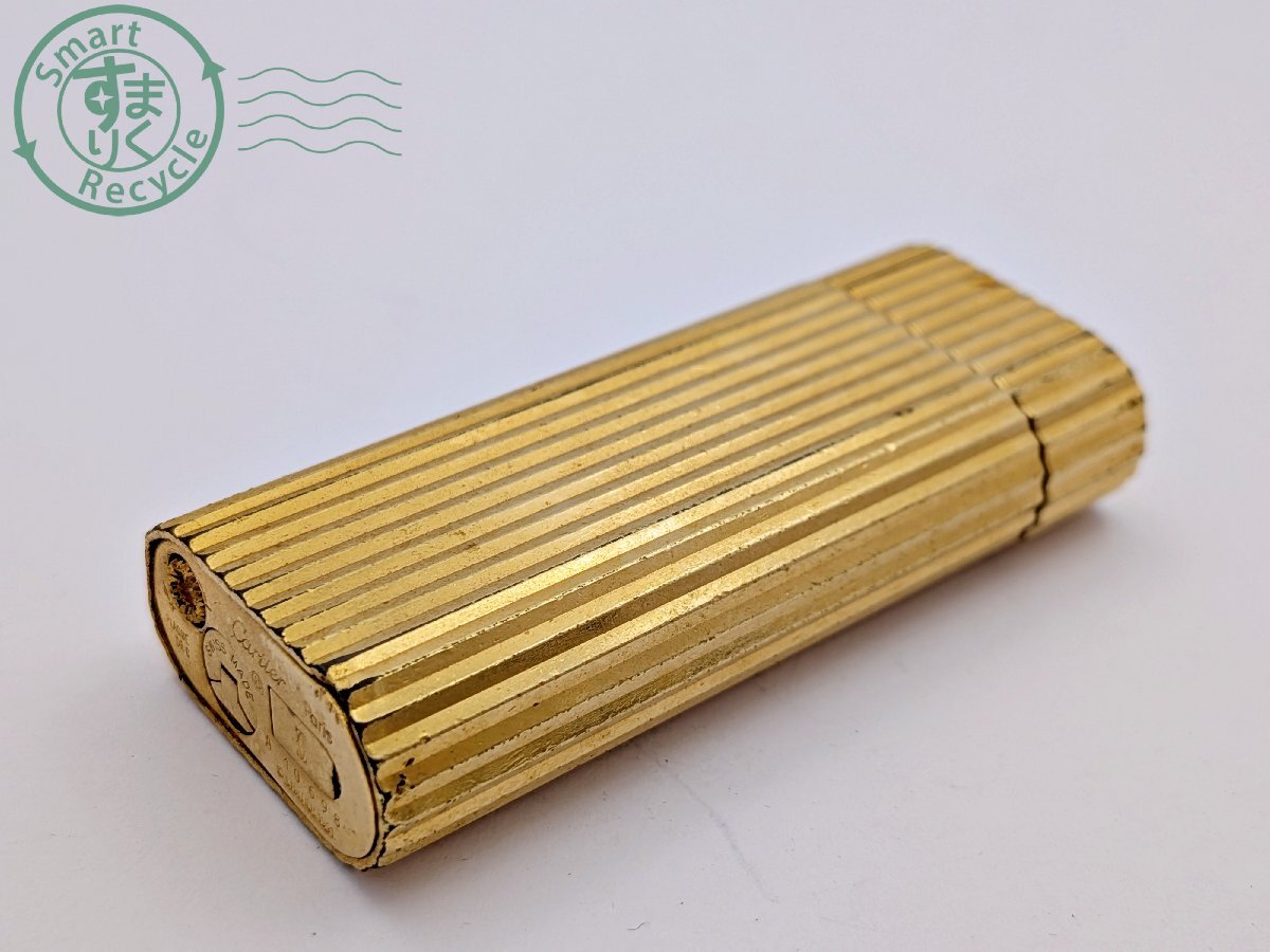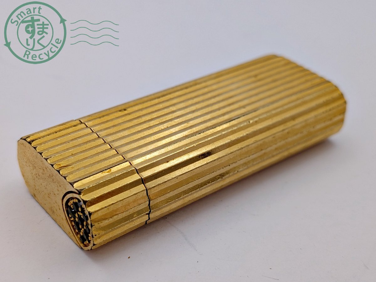 ★ Cartier カルティエ ローラーガスライター オーバル 楕円 ストライプ ゴールドカラー ストーン 石 着火未確認 中古 | |||