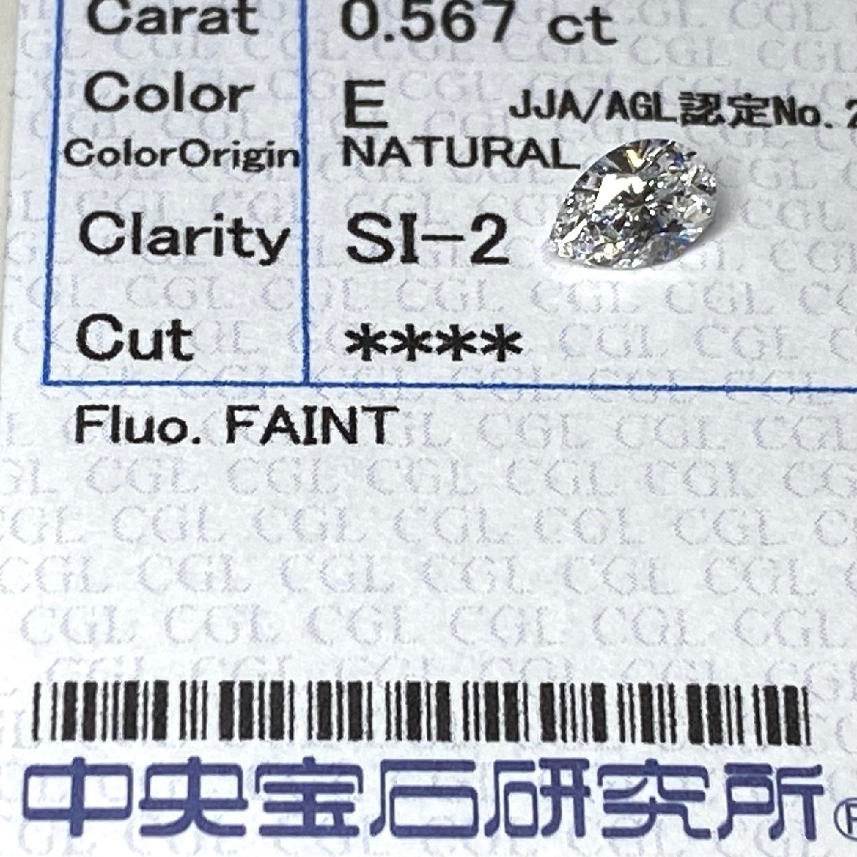 ダイヤモンド ルース 0.567ct E SI-2 PS/ペアシェイプ 中央宝石研究所/CGL ソーティング 天然ダイヤモンド ダイヤ ダイヤルース | ||
