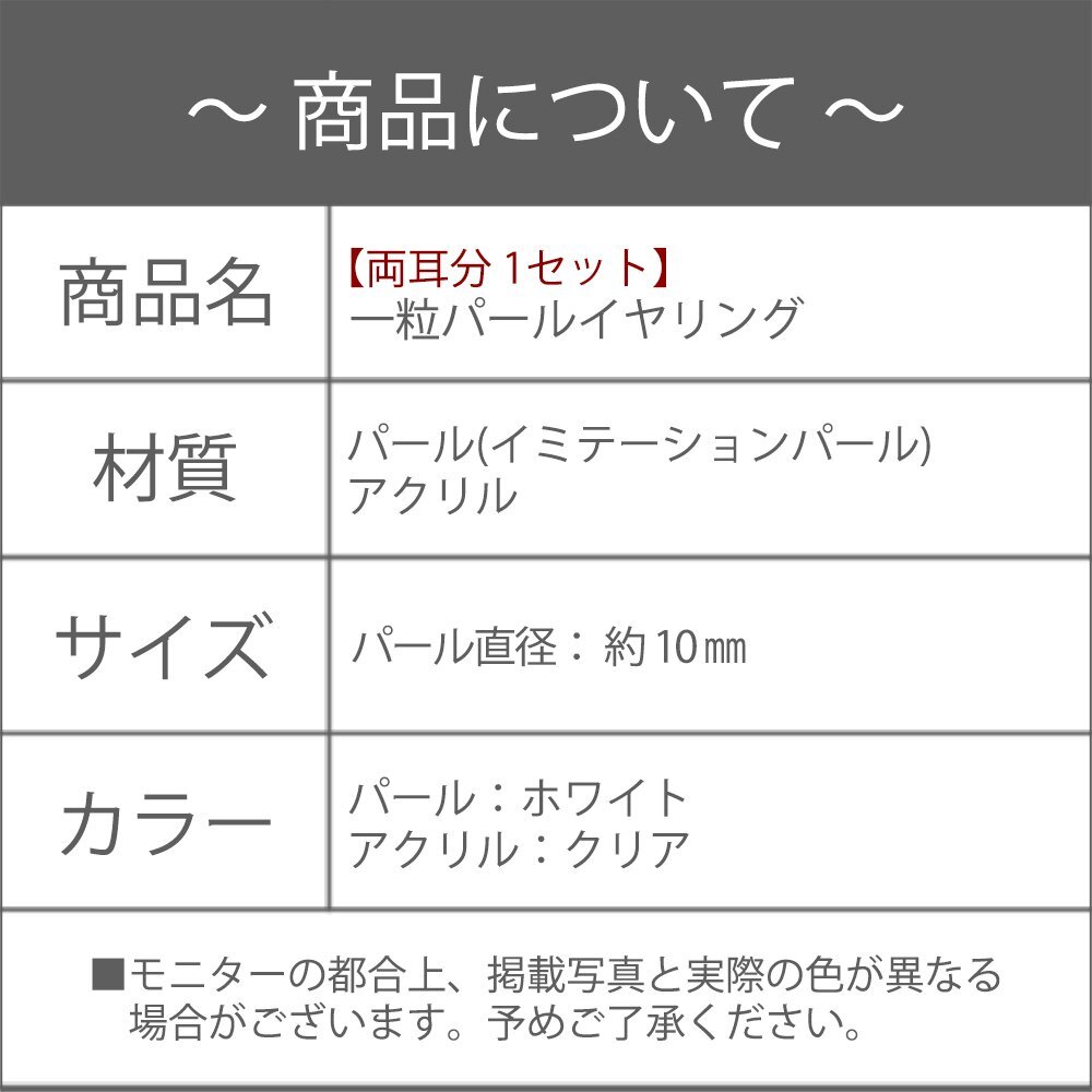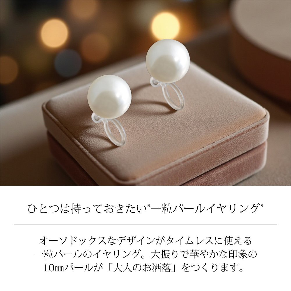 新品/イヤリング/レディース/一粒/パール/10mm/真珠/シンプル/フォーマル/ピアス見え/樹脂/ニッケルフリー/金属アレルギー