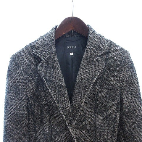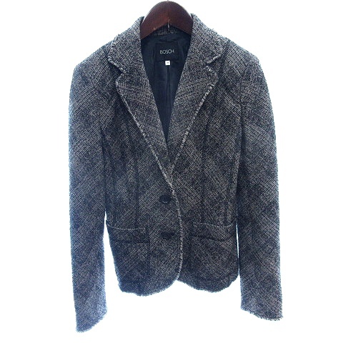 ボッシュ BOSCH テーラードジャケット シングル フリンジ ツイード ウール 総裏地 40 L グレー /AU レディース