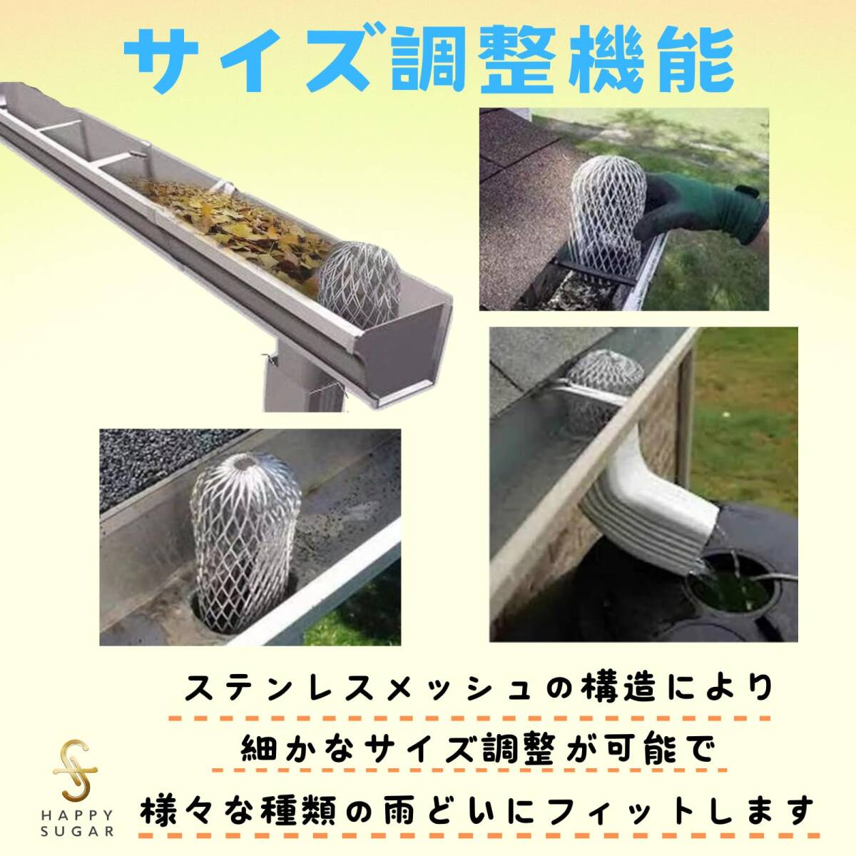 【汎用性の高いサイズ調整機能】ステンレスメッシュの構造により細かなサイズ調整が可能で、さまざまな種類の雨どいにぴったりフィットします。大きさや形状に関わらず、どの雨どいにも簡単に適応できるため、家庭やオフィスなど、さまざまな場所で活用できます。