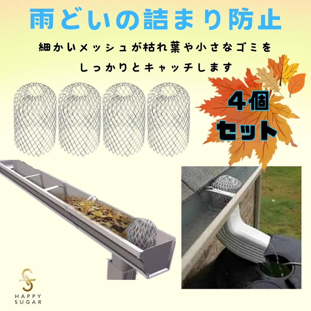 HAPPY SUGAR 雨どいネット 雨樋 ゴミネット ごみカバー 枯葉用ネット 雨樋フィルター 落ち葉 あまどい 部品 屋外 屋根 4個セット