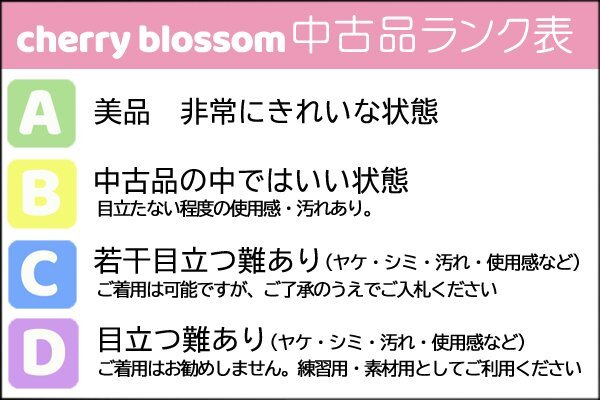 | 当店の中古商品の商品ランクはA~Dの4段階になります。 以下の表をご覧の上ご判断いただきますようお願いいたします。 ※十分な検品の上商品のランクをつけさせていただいておりますが、 見落としによるシミや汚れがある場合がございます。 ご落札の際は、その点をご確認の上ご入札いただきますようよろしくお願いいたします。 ![]() |