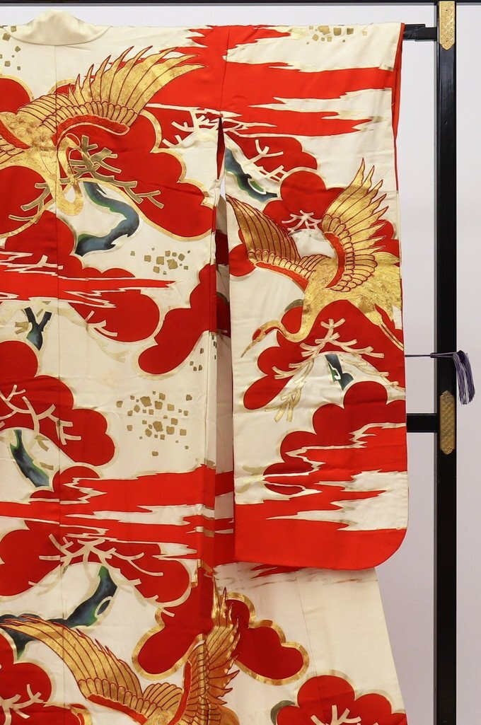 | ★豪華な色打掛★ サイズ、状態は一番最後の画像をご参照ください。 和装では最高位とされているので、結婚式で 使われるのはもちろん、外国の方にも喜ばれるので、 プレゼントとしてもおススメです♪ 豪華な絵柄や刺繍は和室のインテリアの装飾としてもご利用頂けます☆ 色打掛特集ページはこちら ↓↓↓↓↓↓↓↓↓↓↓↓↓↓ 【色打掛大量出品中!!!!】 ※打掛の同梱発送は3点までとさせていただきます。 3点以上落札の場合は落札点数に応じて送料が変更になりますのでご了承お願いいたします。 ※検品のうえ商品の状態をランクで記載しておりますが、見落としによるシミや汚れがある場合がございます事をご了承下さい。 素材:一番最後の画像をご参照ください。 サイズ:一番最後の画像をご参照ください。 | |||