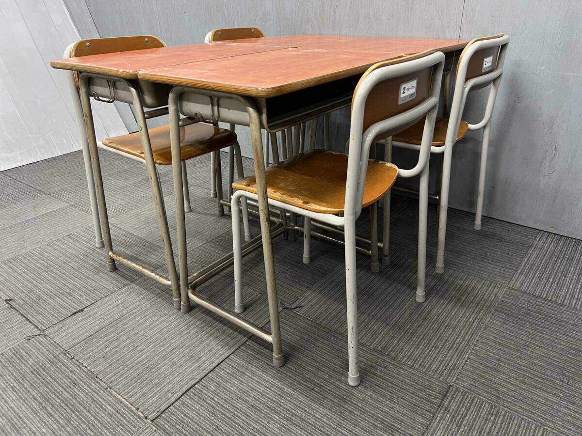 ◆管511◆自社便対応地域あり◆ホウトク製◆学童机4台◆イチムラ製◆椅子4脚◆4組セット 新JIS規格5号(旧JIS規格2号)◆学校学習塾等 高学年