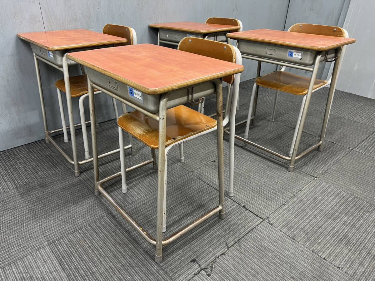 ◆管511◆自社便対応地域あり◆ホウトク製◆学童机4台◆イチムラ製◆学童椅子4脚◆4組セット◆