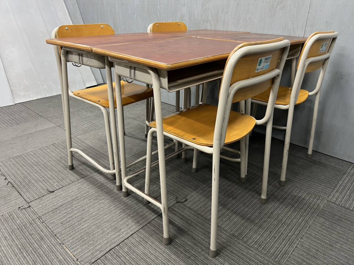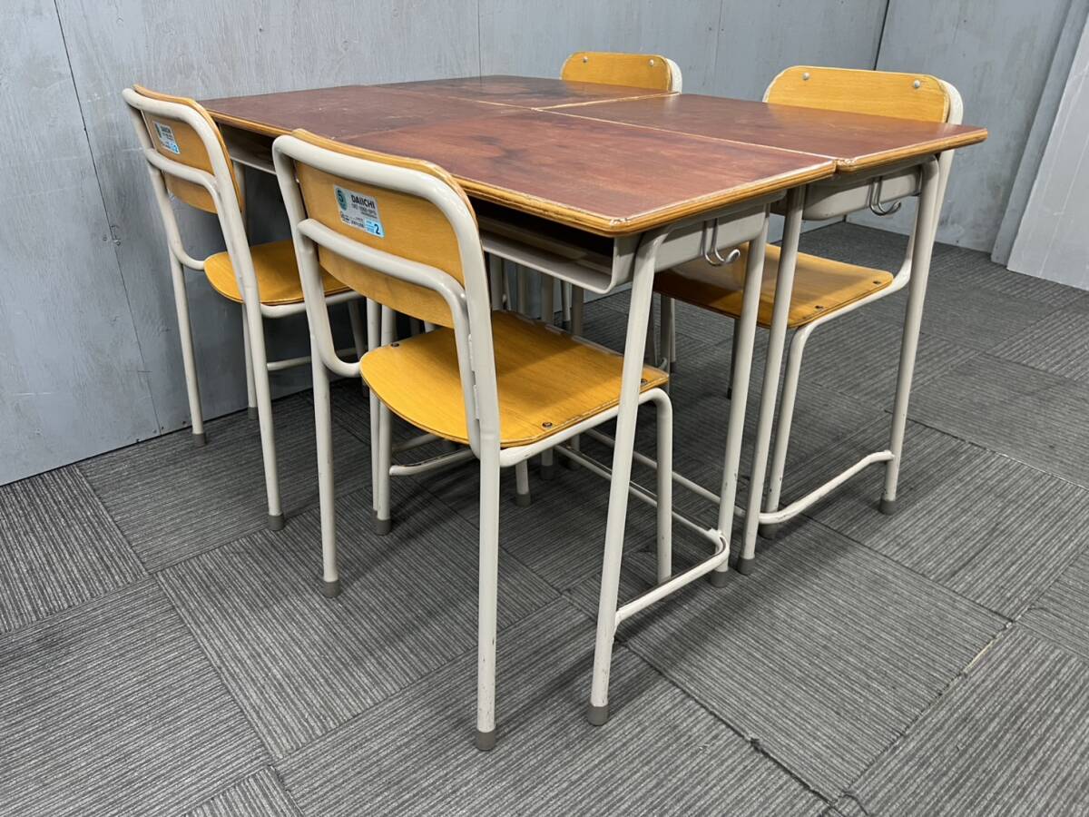 ◆管508◆自社便対応地域あり◆ダイイチ製◆学童机4台 学童椅子4脚◆4組セット◆新JIS規格5号(旧JIS規格2号)◆学校 学習塾等 高学年