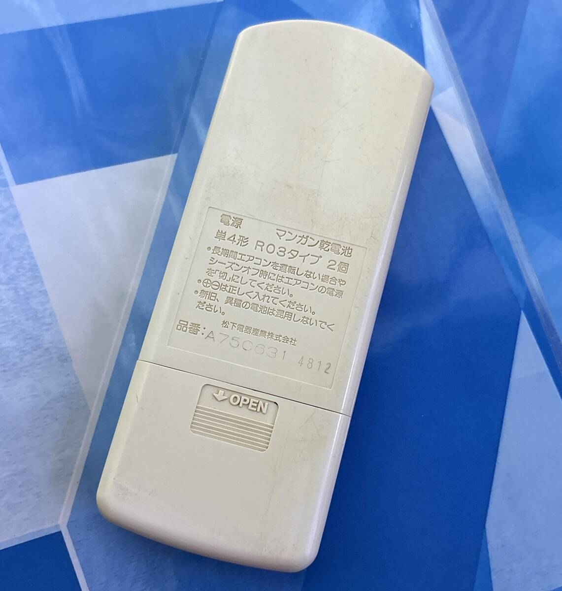 | 常にPCまたは携帯にてヤフオクからの通知を確認できる環境です。 自宅時は落札と同時に梱包を開始しますので発送が早いです。 ゆうパケットポスト(匿名発送)に関しては①から下をご覧下さい。 商品はNational/ナショナル/窓用エアコン用リモコンA75C631美品です。 1997年製、冷房専用の窓用エアコン用リモコンです。 対応機種はCW-C18KS-W CW-C18KS-Wです。 中古としては十分綺麗なリモコンです。 28年経っていますが程度は良いです。 ヒビ/割れ/文字消え/ドット抜けなし。 写真は全て現物で裏の型番は(A75C631(4812)です。 美観は人それぞれ違いますので写真を見で御判断下さい。 新品と比べれば多少なりとも変色はあります。 メンテ及びアルコール消毒済みです。 全ボタンから赤外線信号が出ることを確認しました。 液晶表示も正常に動作しました。(タイマー等もok) 重要な電池ホルダー内の接点もピカピカです。 テープ付きopp袋に入れ発送しますので電池を入れてから再利用できます。(自由) 内部が濡れない3重防水梱包ですので外部ポストでの大雨でも大丈夫です。 (好評) 写真を撮る角度及び光の関係で汚れ/キズが見え隠れする場合が有ります。 液晶テレビの表示環境により写真と商品に差異が生じる事があります。(特に白系) ■------------■---------------■--------------■---------------■ ①■ゆうパケットポストの発送に関して■ ゆうパケットポストは土曜/日曜/祝日の配達が可能です。(定形外郵便は配達しません) 発送は基本ゆうパケットポストにて発送致します。(匿名発送) ゆうパケットポストはポストへ投函し発送します。(数時間後追跡が反映されます) 平日の集荷時刻は午前12時と午後17時です。 土曜/日曜/祝日のポスト集荷は午前12時と午後16時です。(入金は15時30分まで) 平日午前11時までに決済して頂くと午前の便で発送可能です。 平日午後16時までに決済して頂くと午後の便で発送可能です。 それ以外の時間帯での決済済み商品は翌日の午前の便になります。 到着日目安ですが関東周辺/関西周辺は2日でポスト投函されます。 出張/レジャーなどにより当日の発送が出来ない場合もありますので御了承下さい。 当日の発送が出来ない場合、翌日100%発送致します。 ■注意事項を必ずお読みになり御入札ください。(厳守) 管理8059 National/A75C631(4812) | ||