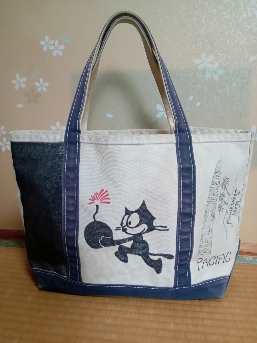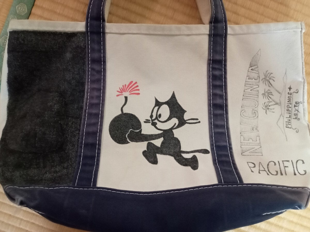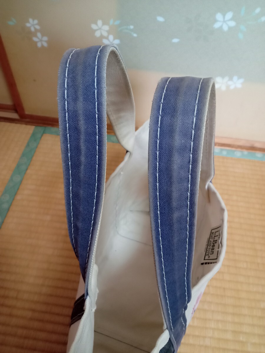 数年前に新品で購入したL.L.BeanのトートバッグMサイズ青になります。ある程度使った後、画像のようにマッキーでミリタリーの絵を参考に自身で描いてしまいました。向かって左側失敗して黒で塗りつぶしました。そのせいで使わなくなったので出品します。バッグ自体は頑丈なのでまだまだ問題なく使用できます。自立もします。画像では綺麗に見えますが全体的にかなり汚れ、擦れ、黄ばみ、焼けあります。