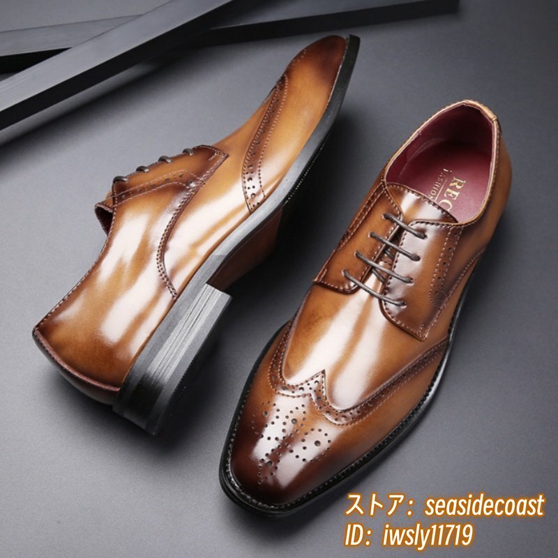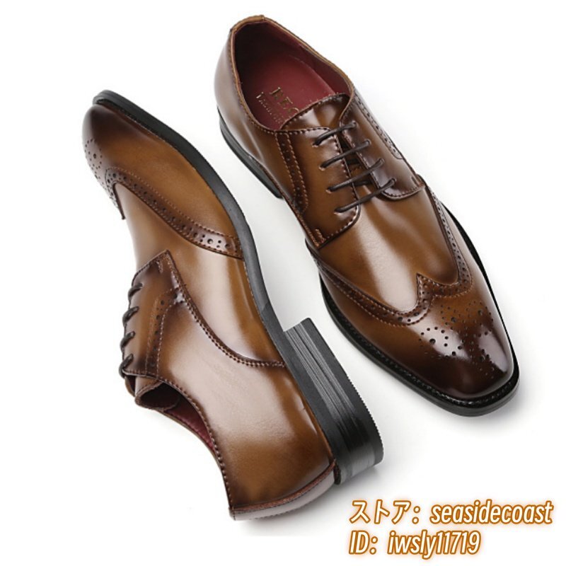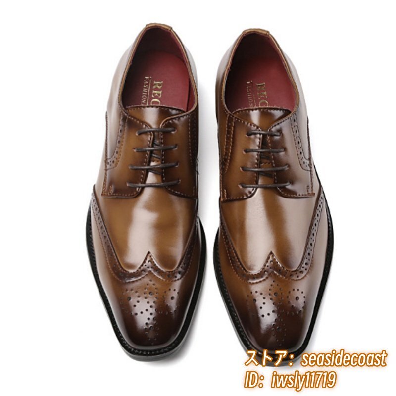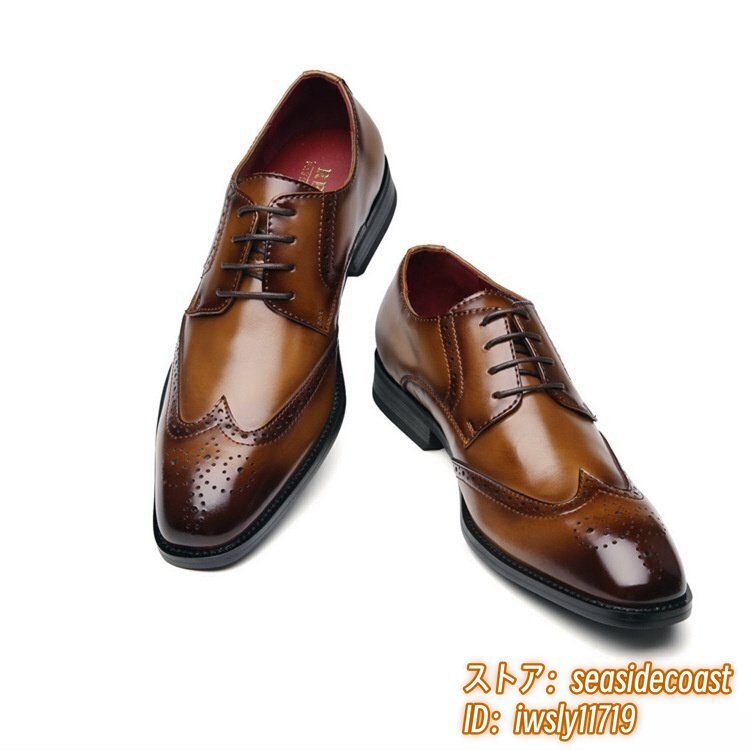 最高級 牛革 ビジネスシューズ 職人手作り メンズ 本革 レザーシューズ 新品 フォーマル 紳士靴 ウイングチップ 通勤靴 ブラウン 25.0cm