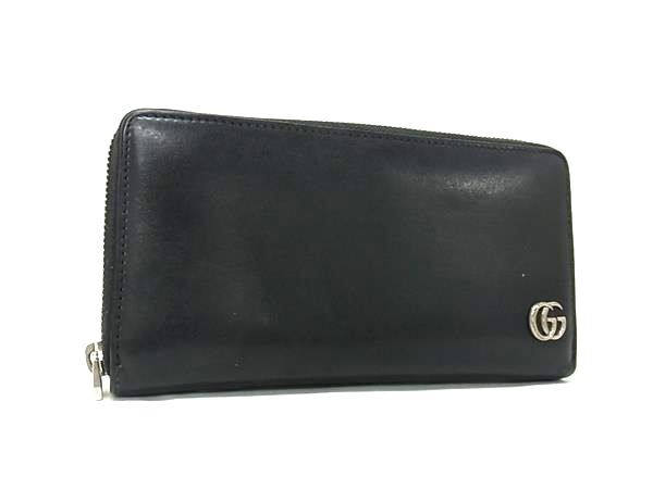 1円 GUCCI グッチ 428736 GGマーモント レザー ラウンドファスナー 長財布 ウォレット 札入れ 小銭入れ カード入れ ブラック系 FS5354