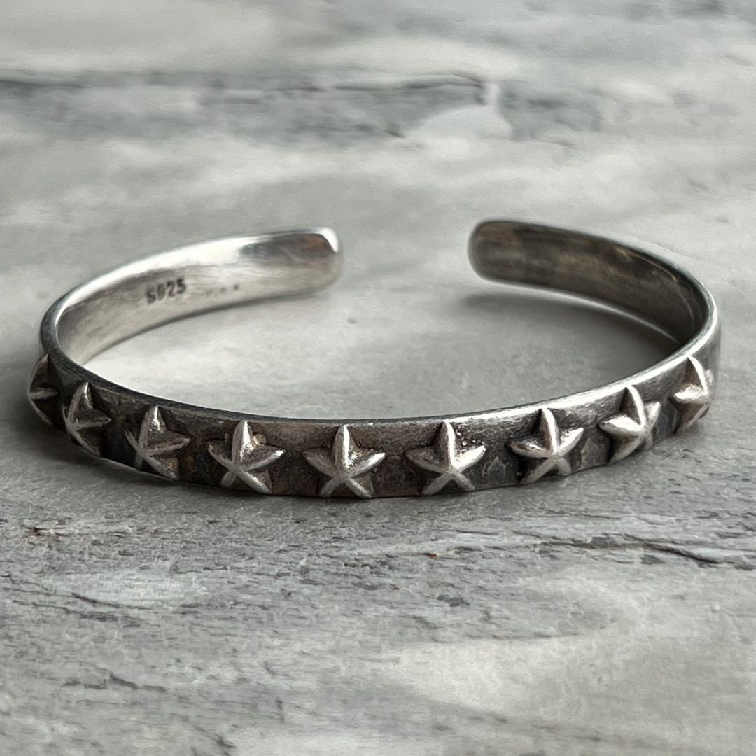 雰囲気の良いアメリカンスターデザインのシルバーバングルになります。