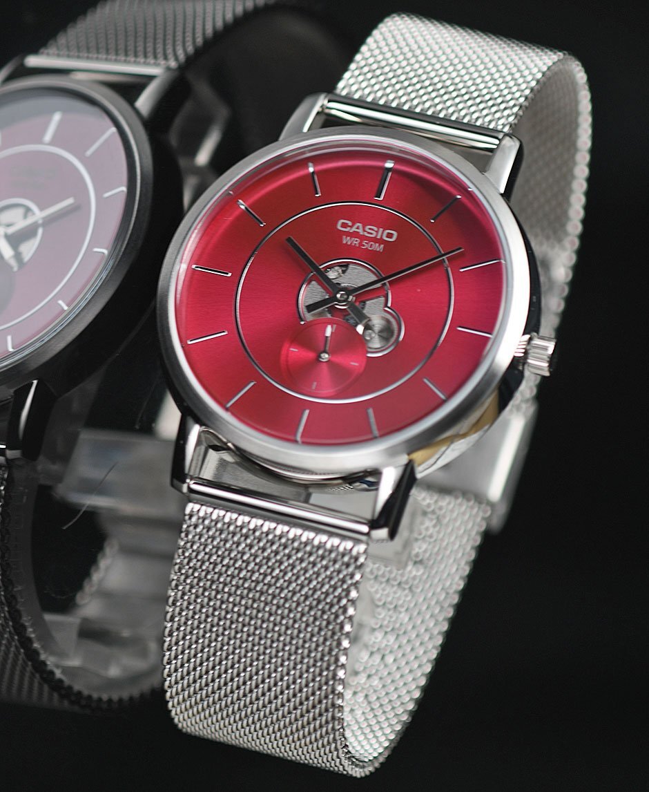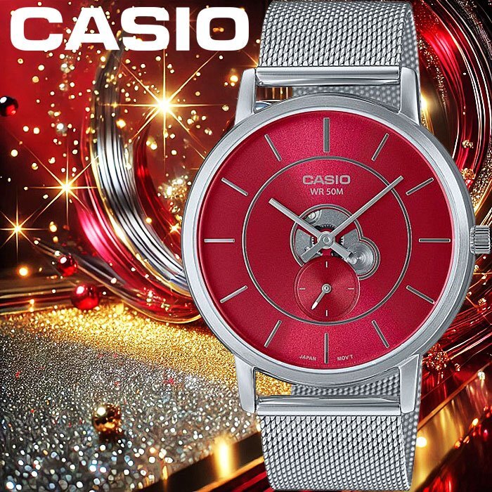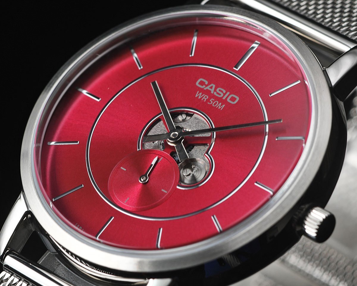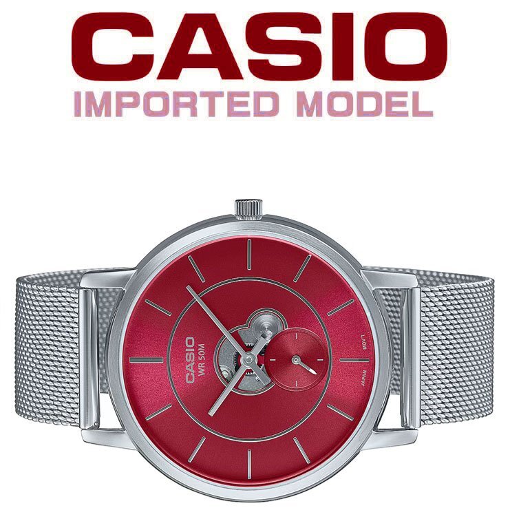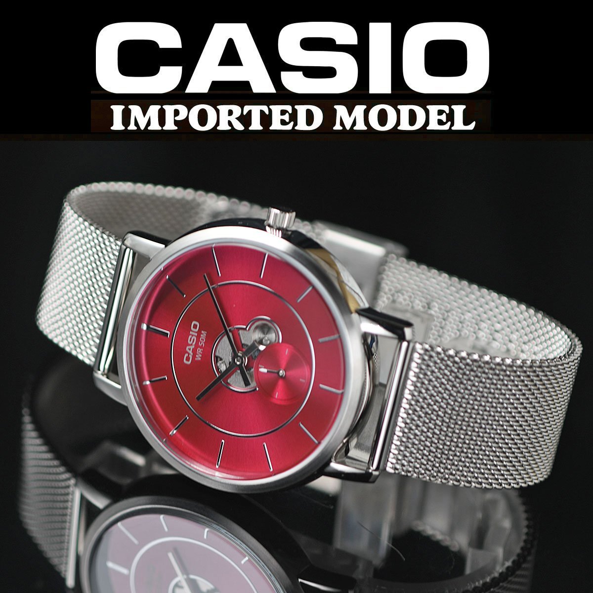 最後1本 新品1円 逆輸入カシオ ハーフスケルトン 無駄そぎ落としたシンプルで飽きの来ない王道デザイン ルビーレッド50m防水 腕時計 CASIO