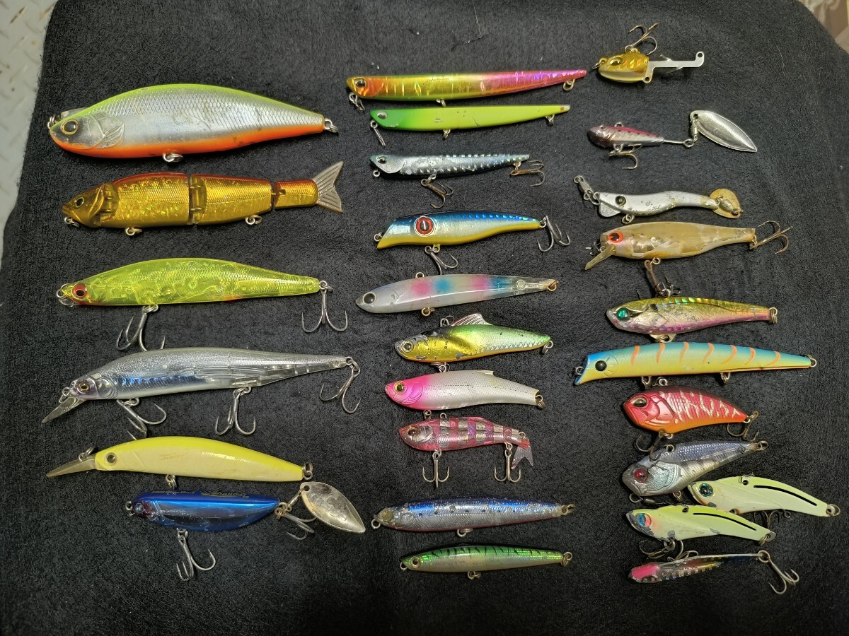 中央上から、マニック115・95・75・スーサン・スライトエッジ90・サルベージサウンド70ES・フィンテールバイブ55・クルーズsPen・シュガーペンシルFW