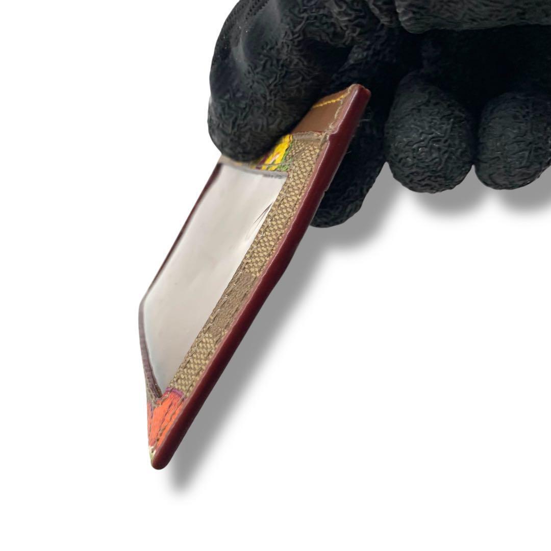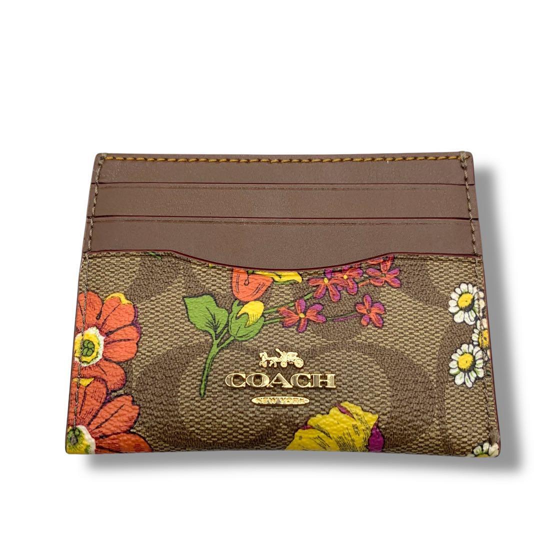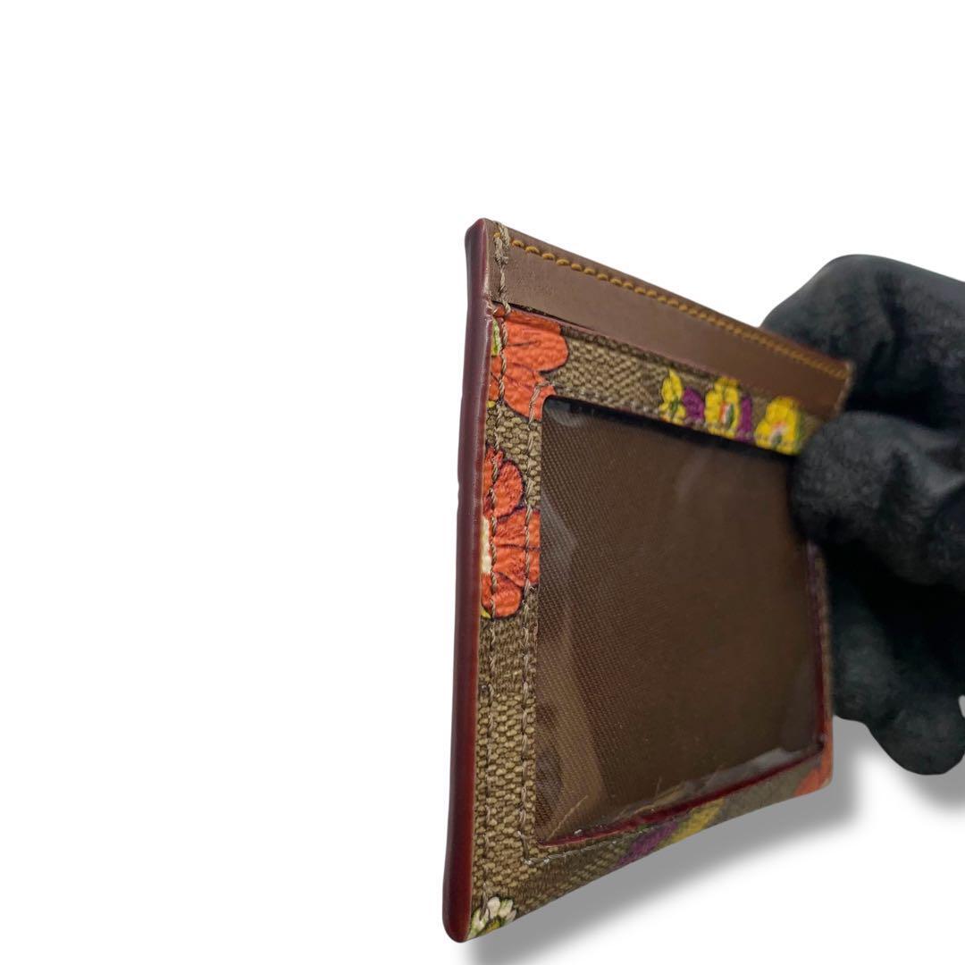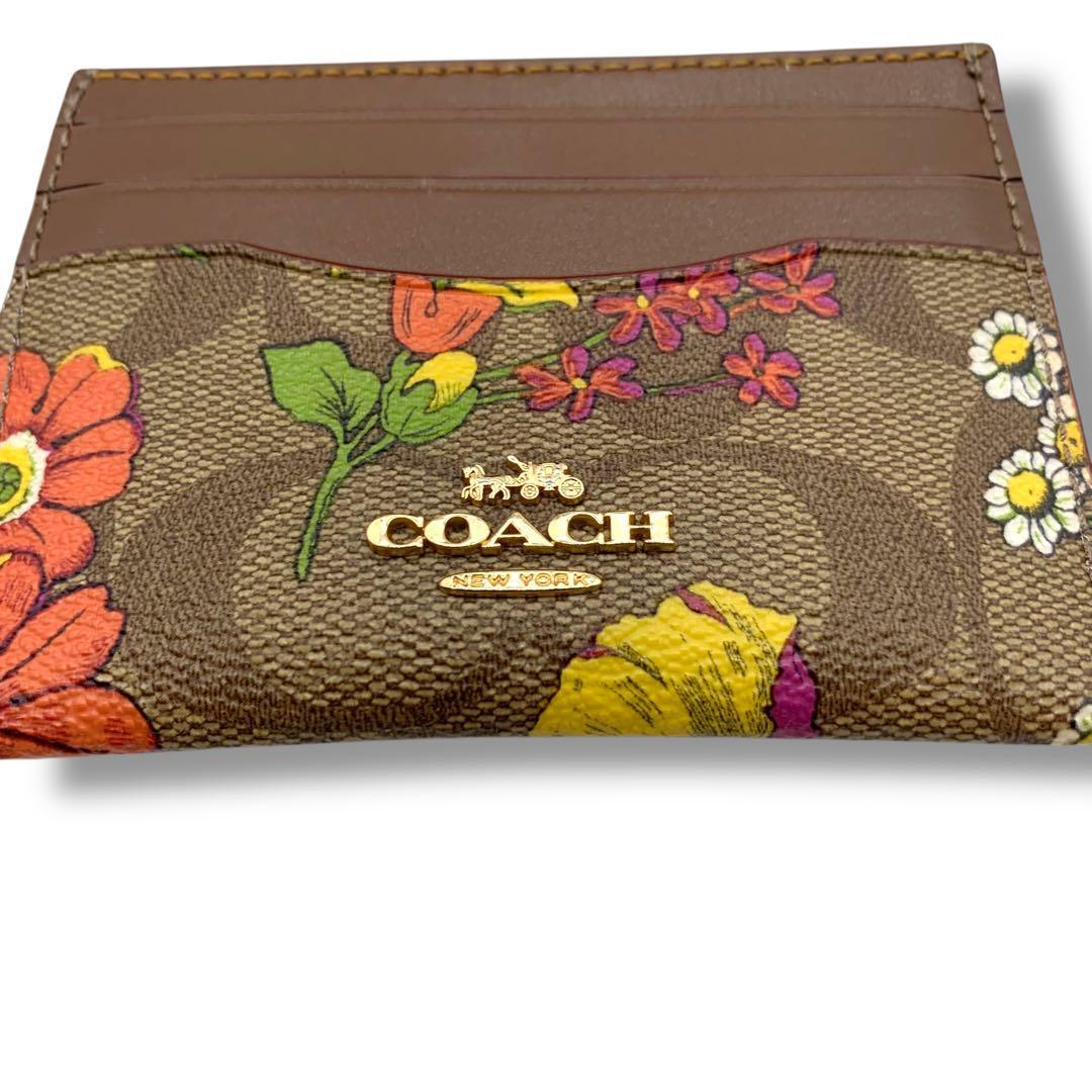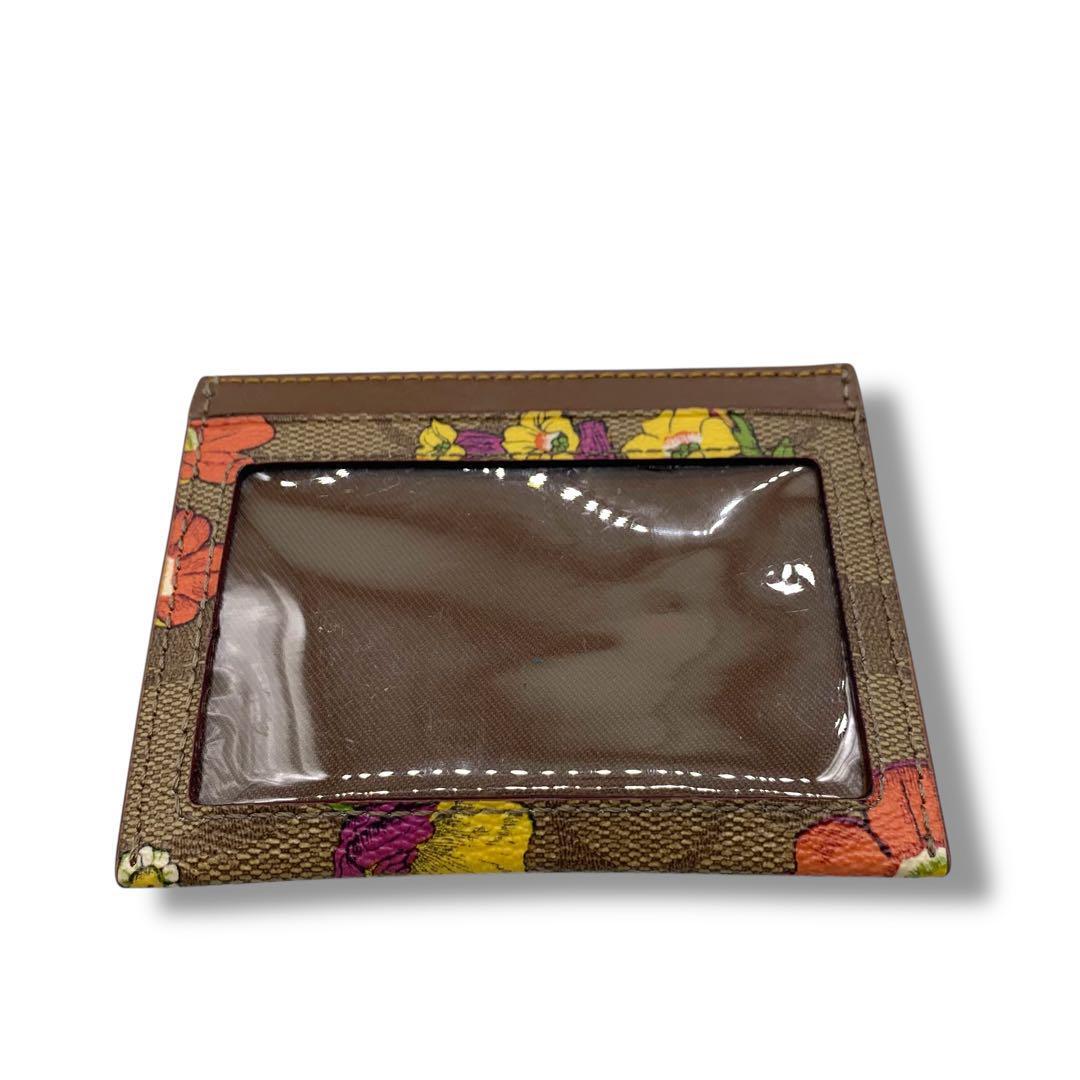 極美品! コーチ 花柄 カードケース レザー 定期入れ ブラウン