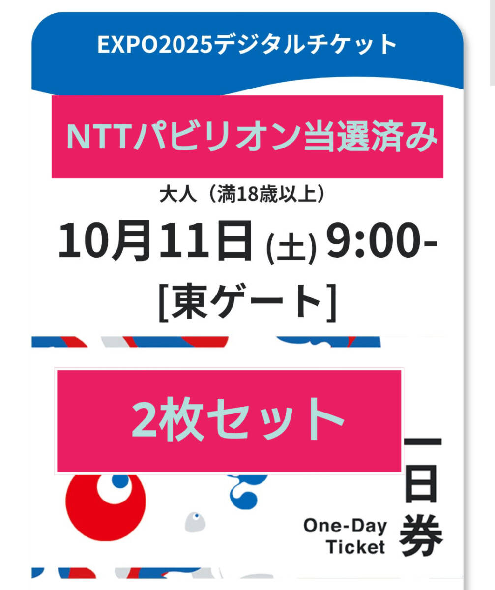 10月11日 (土) 9:00 東ゲート 予約済み 2枚