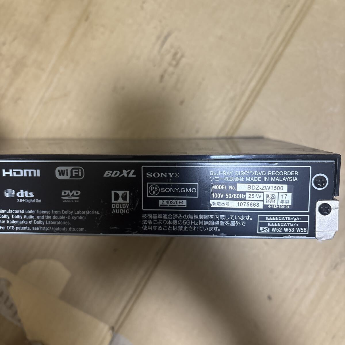 SONY BDZ-ZW1500 ブルーレイディスクレコーダー
