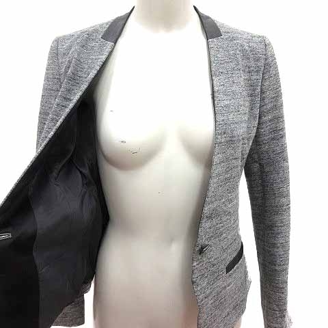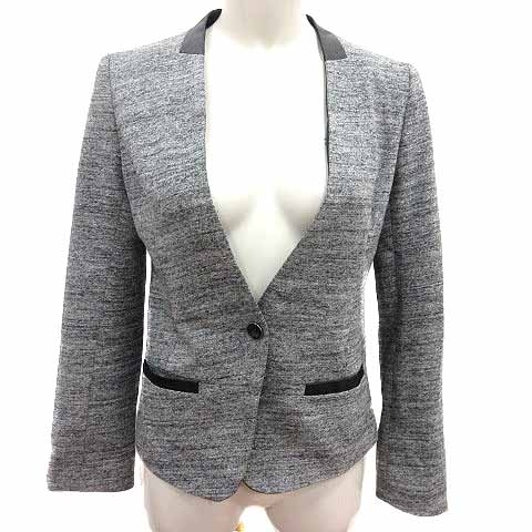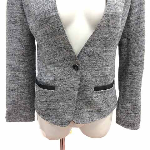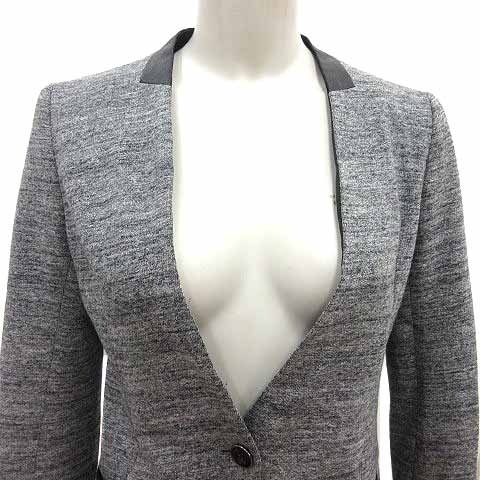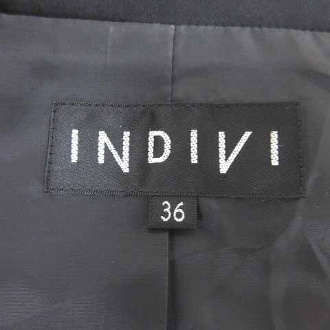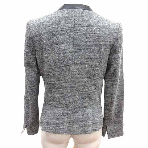 インディヴィ INDIVI ノーカラージャケット 総裏地 36 S グレー 黒 ブラック /YK レディース