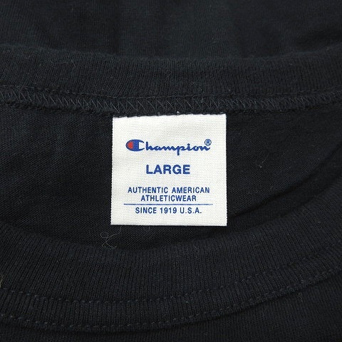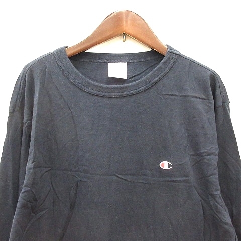 チャンピオン CHAMPION カットソー Tシャツ クルーネック 刺繍 長袖 L 紺 ネイビー /MN メンズ