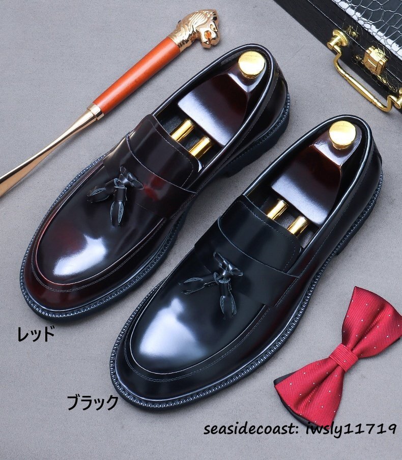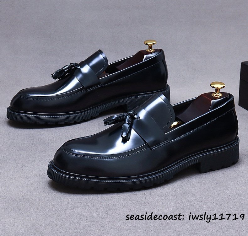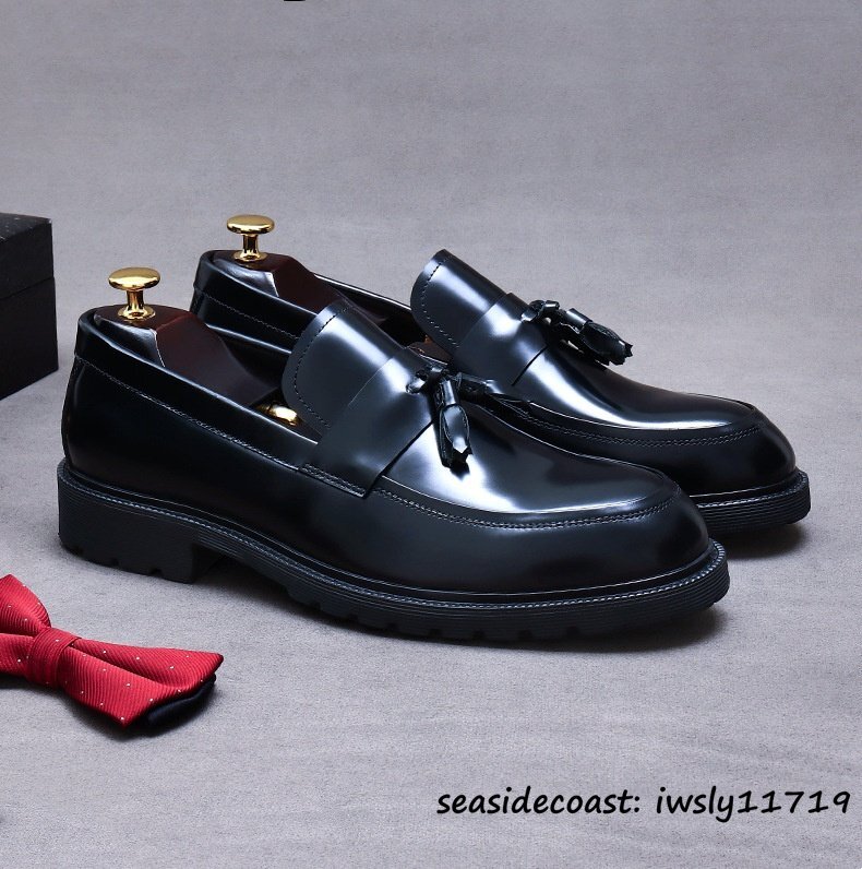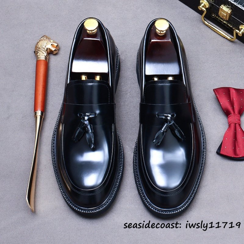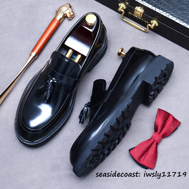 超希少★定価10万 ビジネスシューズ 本革 職人手作り タッセルローファー 厚底 レザーシューズ 高級牛革 革靴 紳士靴 新品 ブラック 28.0cm