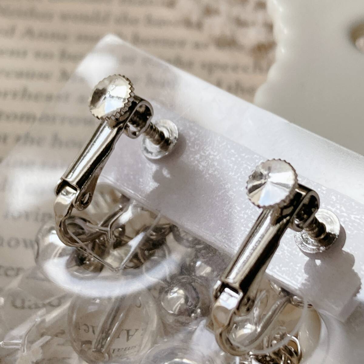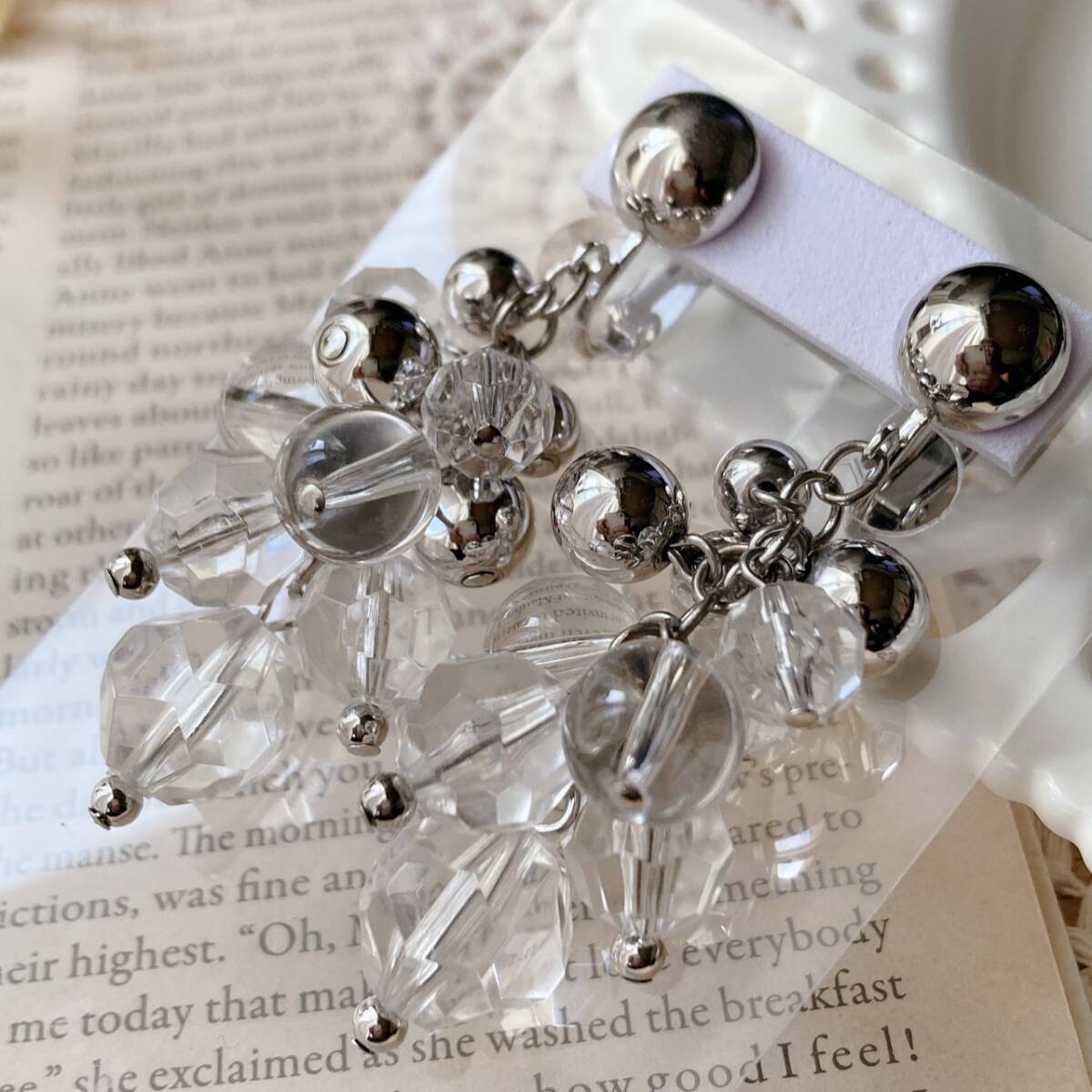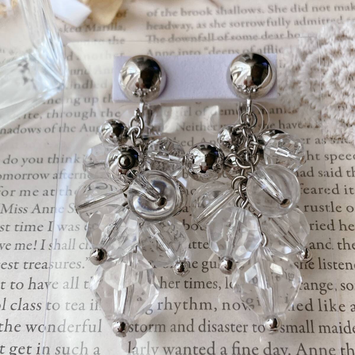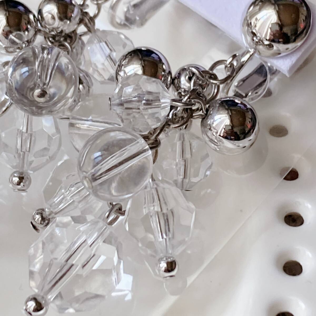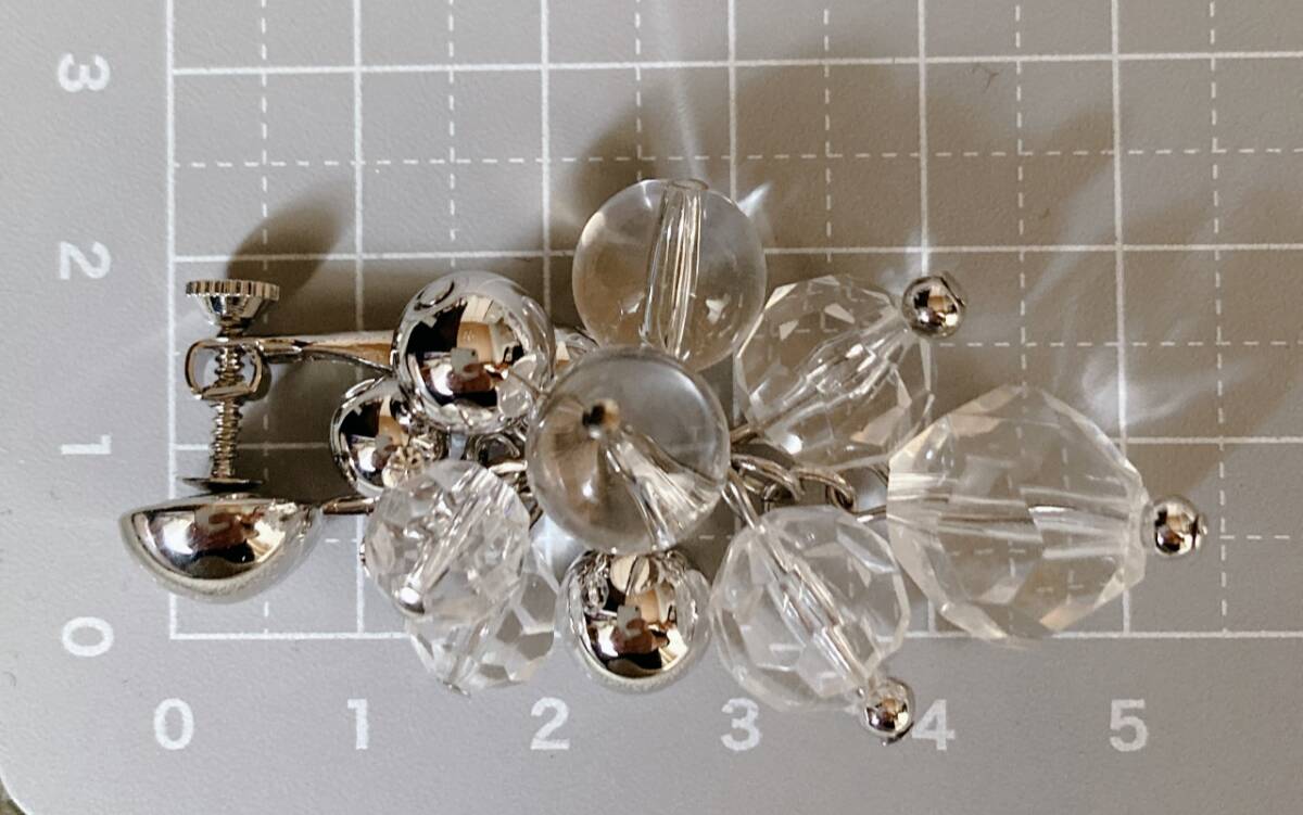 イヤリング ロング クリスタル ビーズ シルバートーン ゆらゆら ジャラジャラ 美品☆vintage jewelry accessories F0239