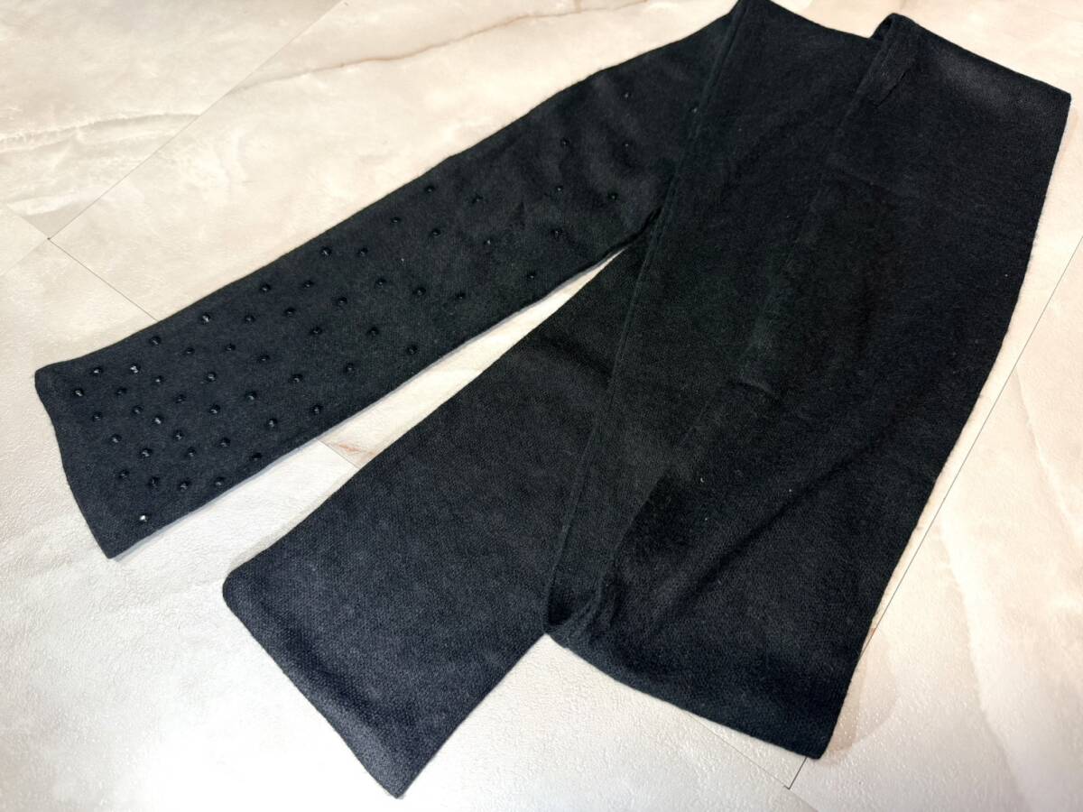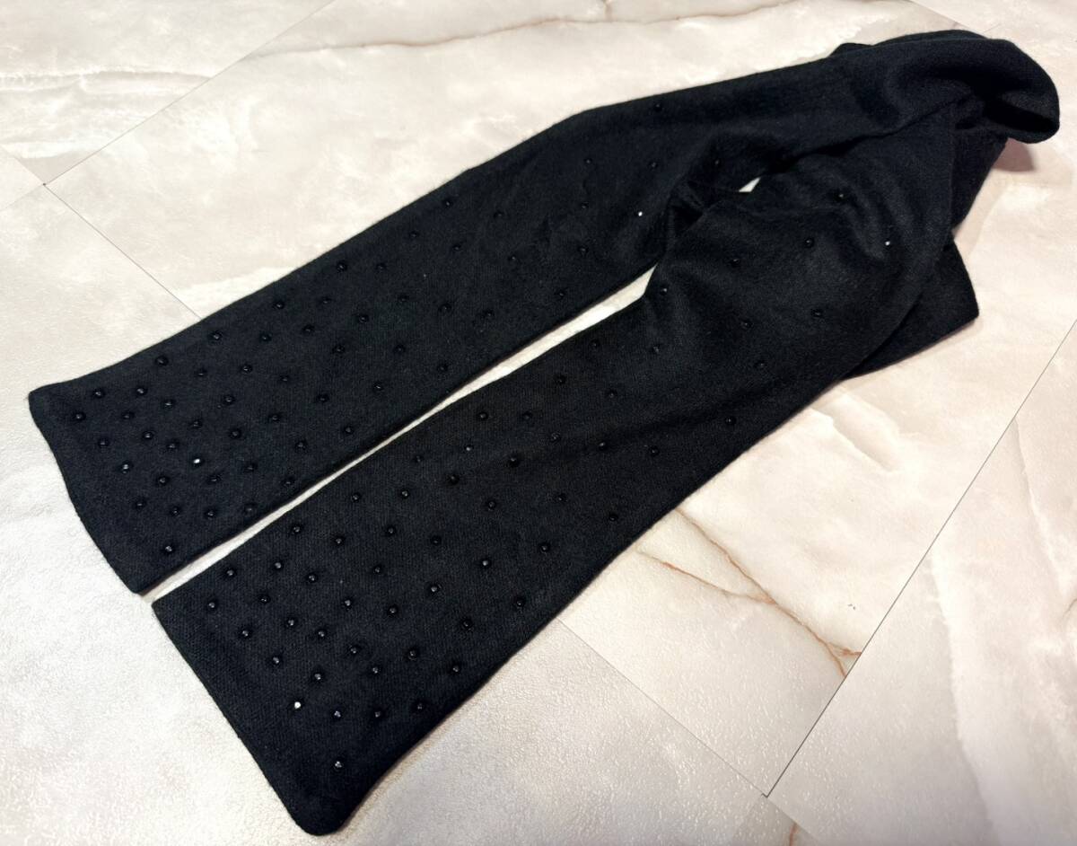 【クリスタル 装飾】ラインストーン 付 マフラー スカーフ 巻き物 首巻スカーフ 黒ビジュー 軽量 ジャケット コート ニット セーター