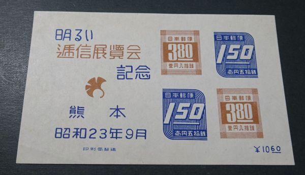 ◆「熊本逓信展」小型シート(未使用NH・発行時から裏糊無し)