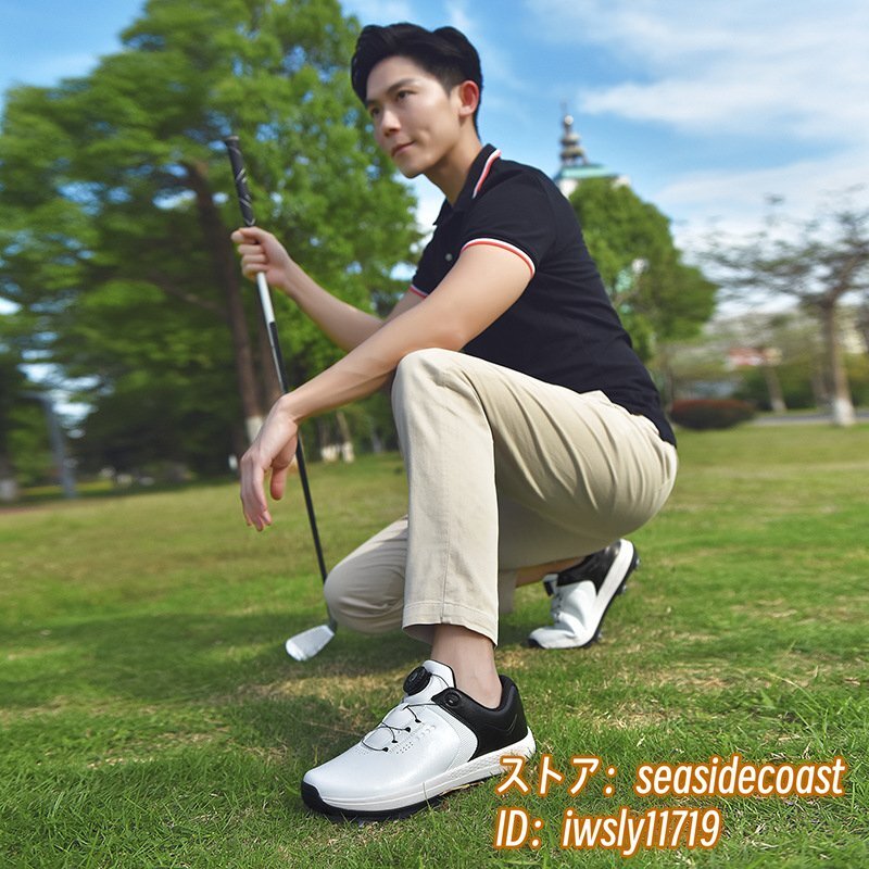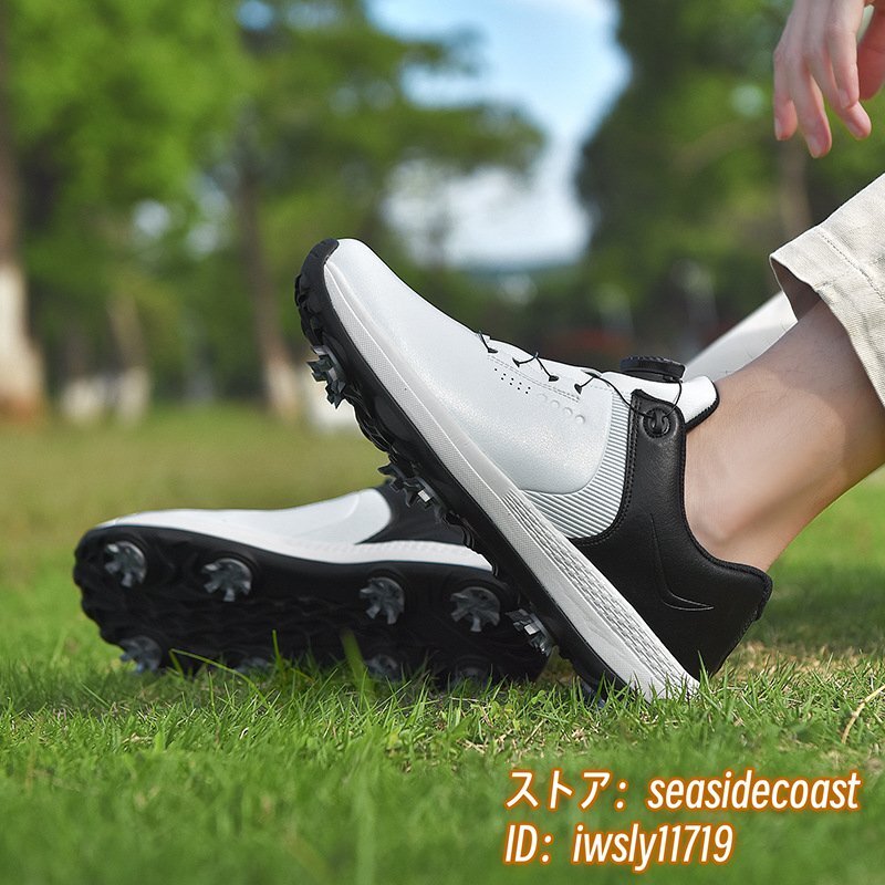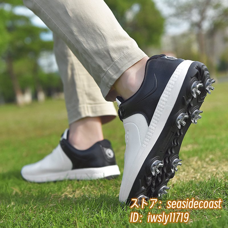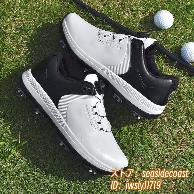 高級品 ゴルフシューズ 強いグリップ ソフトスパイク 運動靴 フィット感 軽量スポーツシューズ 新品 弾力性 通気性 防滑 耐磨 白/黒 28.0cm