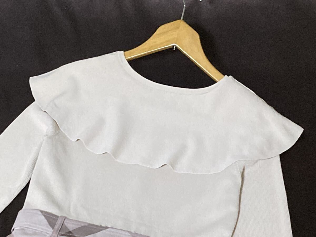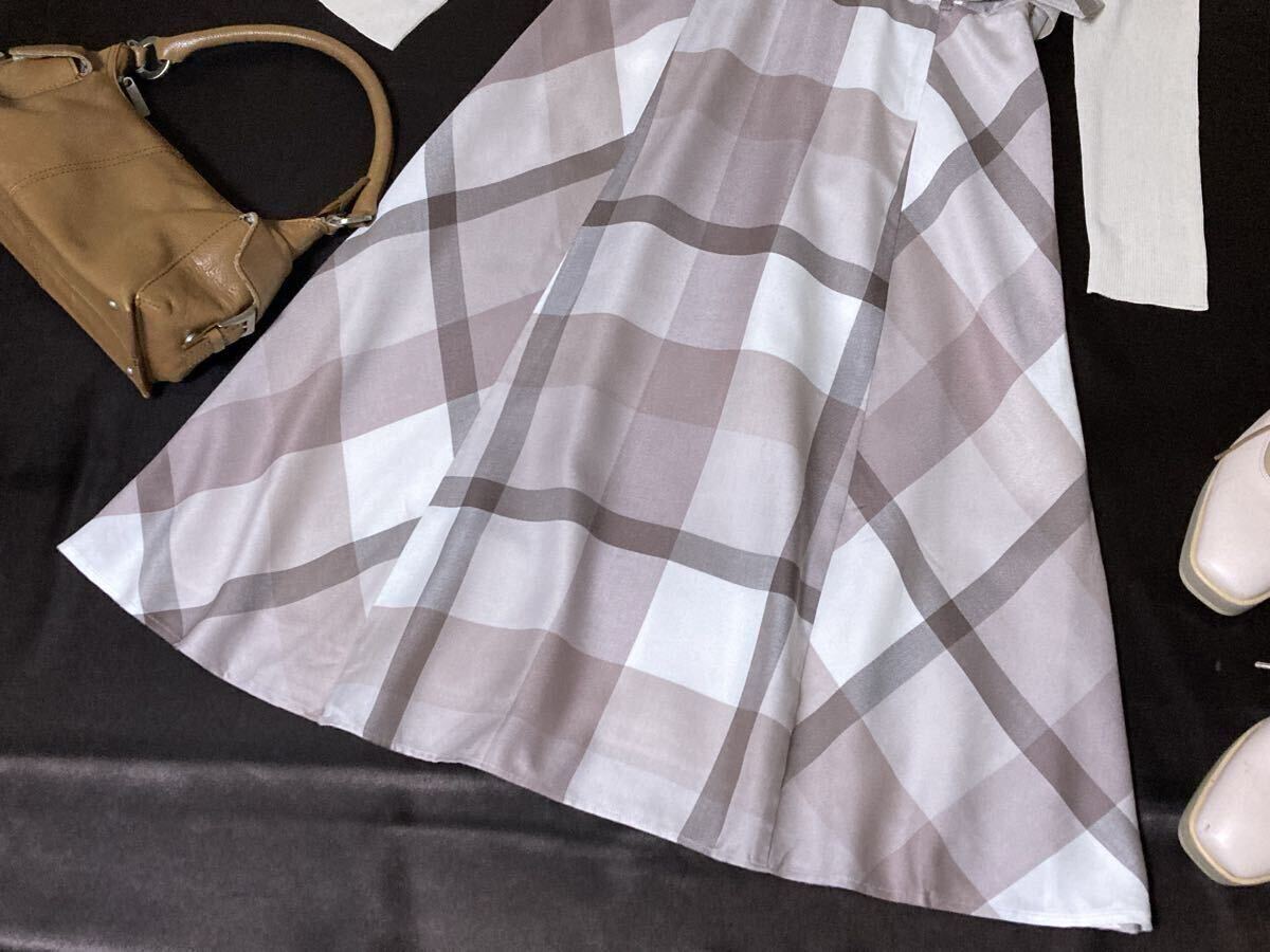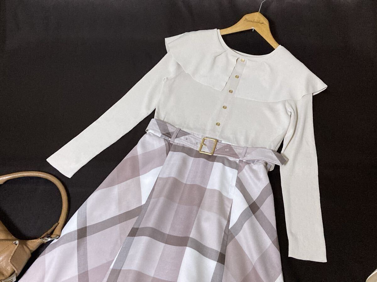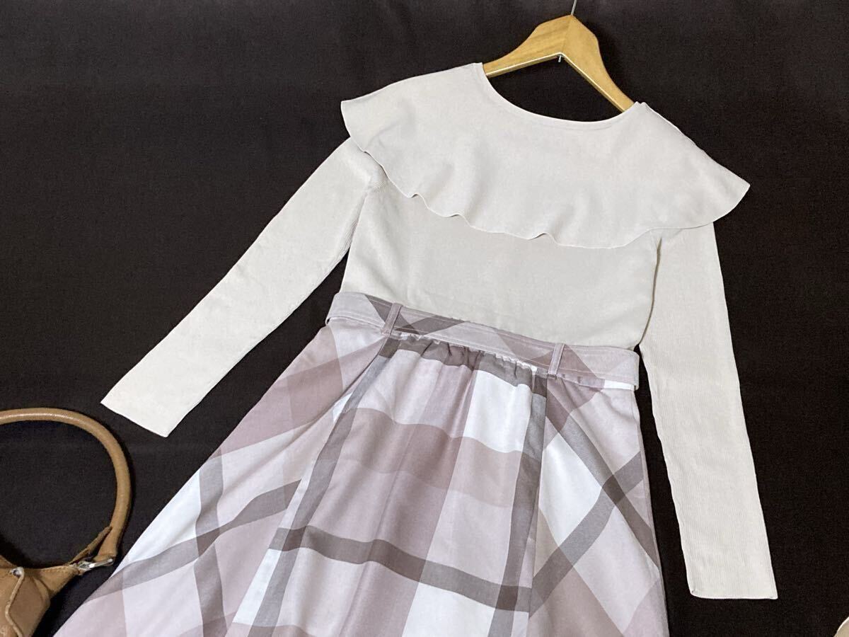 新品同様 ブルーレーベルクレストブリッジ 肩のフリルが可愛いニットにチェック柄スカートのドッキングワンピース 38 送料230円♪