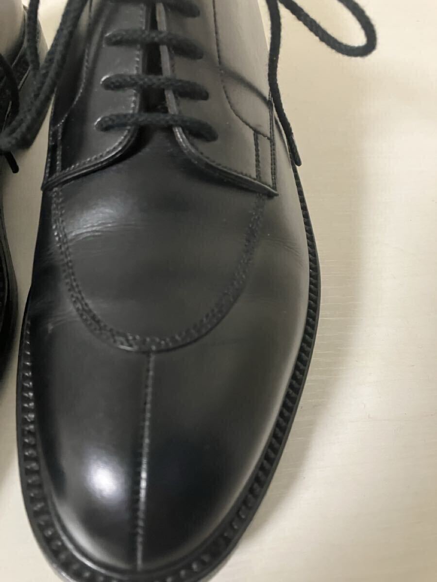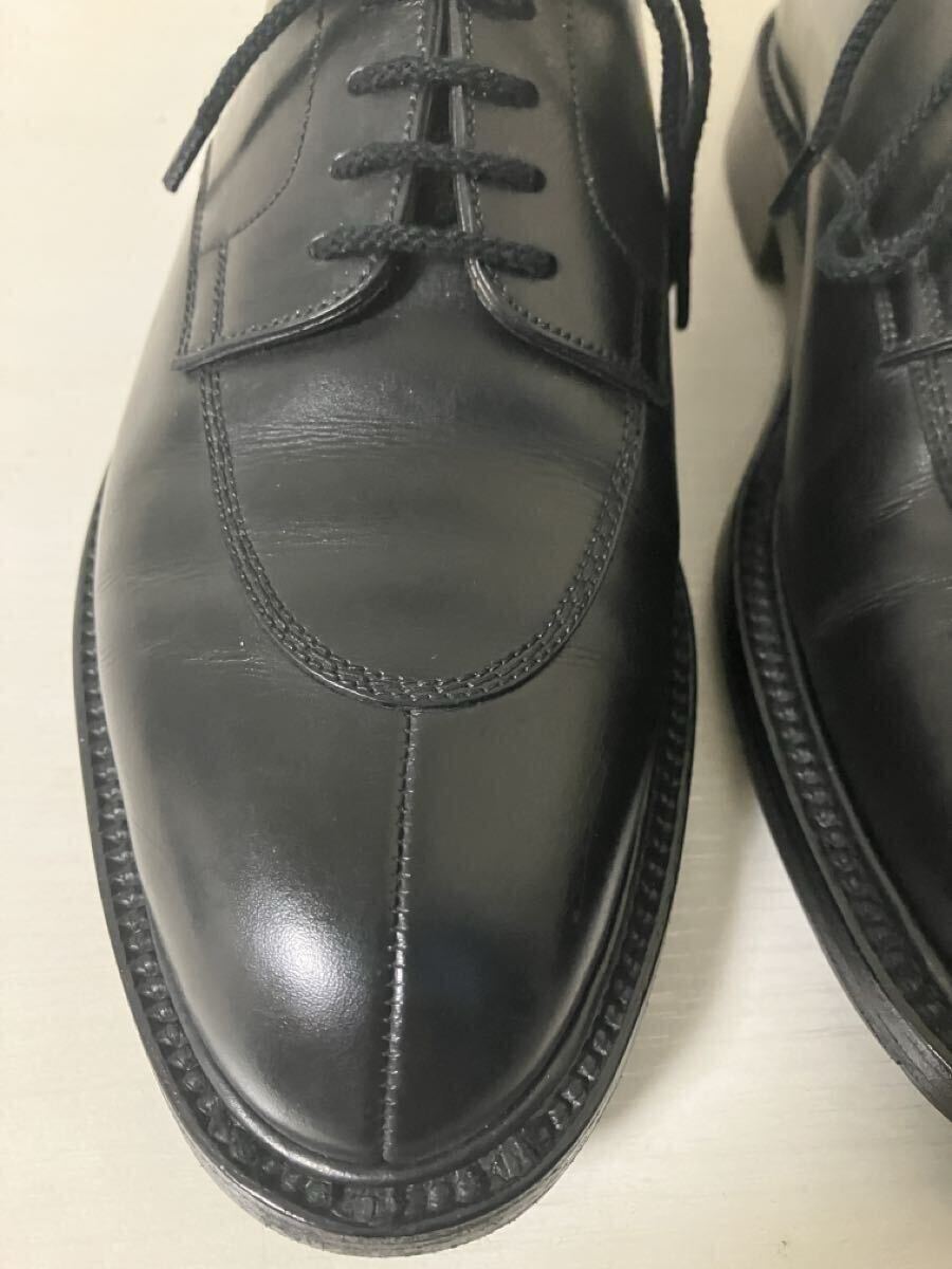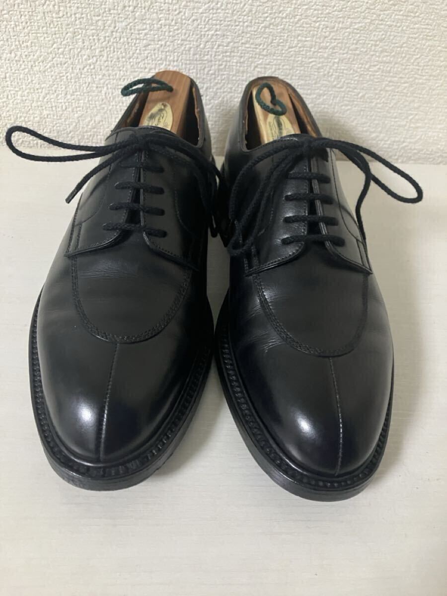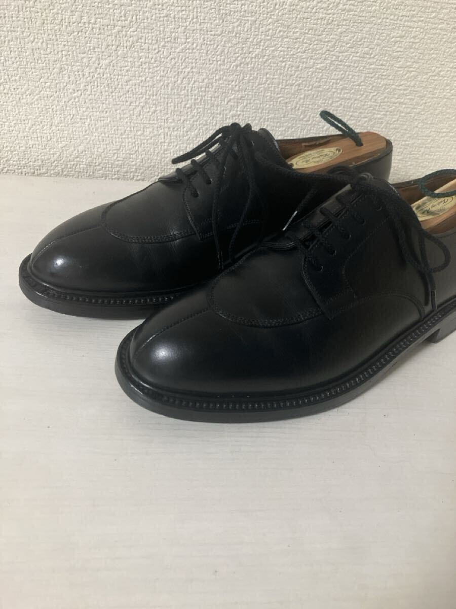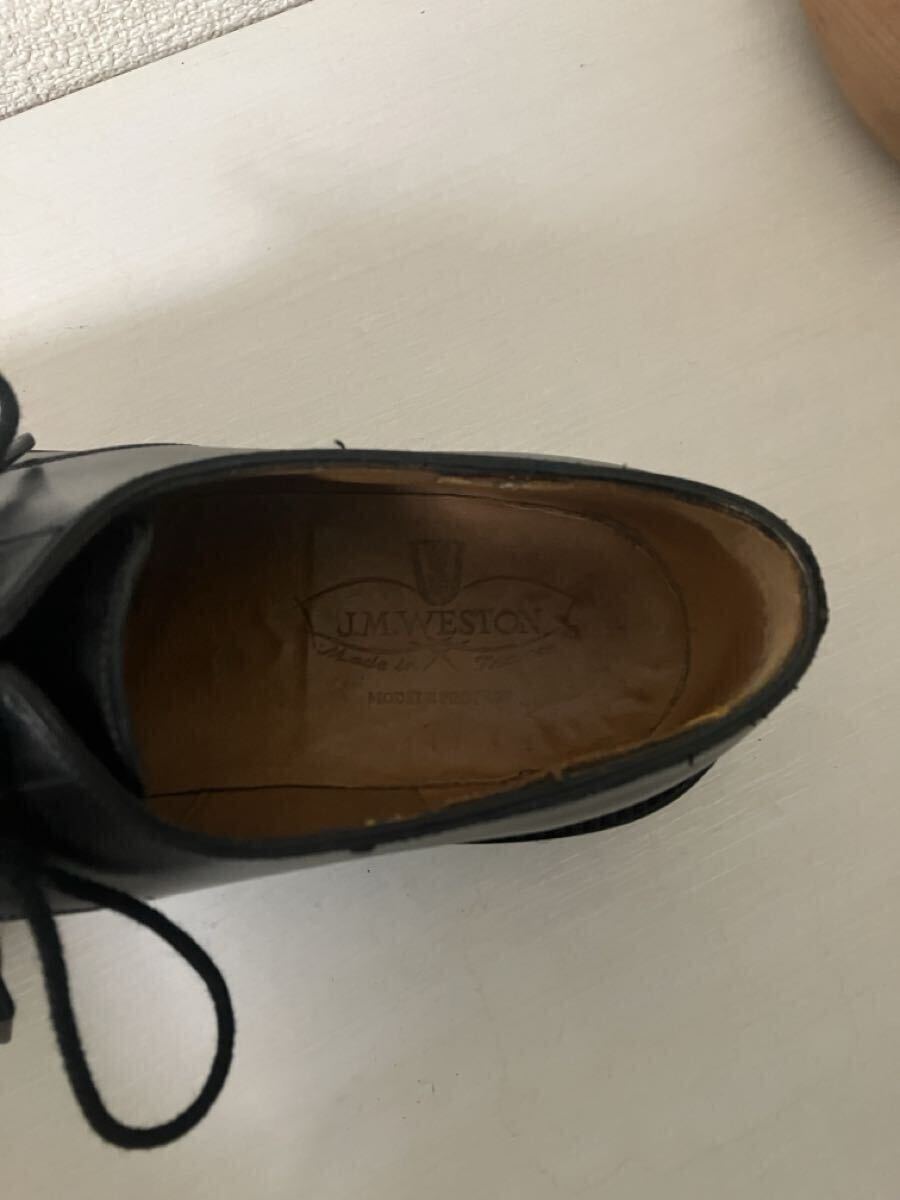 履きジワはさほど深く入っておらず、まだ革の柔らかさも残っておりますので、これからご自身の足型に合わせてエイジングが可能です。ヒール内側をレザー補強しています。光沢感もしっかりあります。