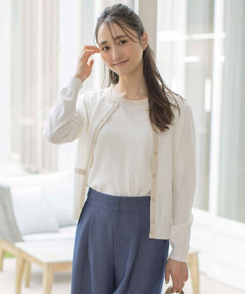 素材:オフ、ラベンダー、ネイビー: 【インナー】[インナー][本体]レーヨン:64%,ナイロン:36%[ラメ部分]レーヨン:53%,ナイロン:31%,ポリエステル:16%【カーディガン】[カーディガン][本体]レーヨン:64%,ナイロン:36%[ラメ部分]レーヨン:53%,ナイロン:31%,ポリエステル:16%