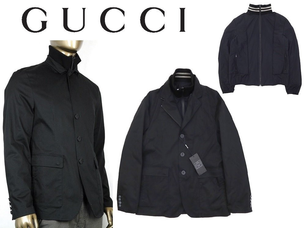 38万新品◆50◆グッチ GUCCI VIAGGIO 着脱インナーダウン付き 高機能3wayストレッチコットンブルゾン黒