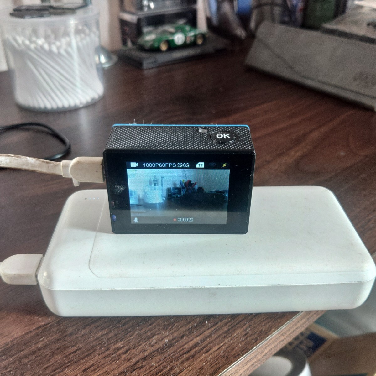 新品の未使用ですがバッテリーは充電出来ません。モバイルバッテリーに繋げたままだと録画も出来ます。カメラの表面の青いゴムはベトベトします。