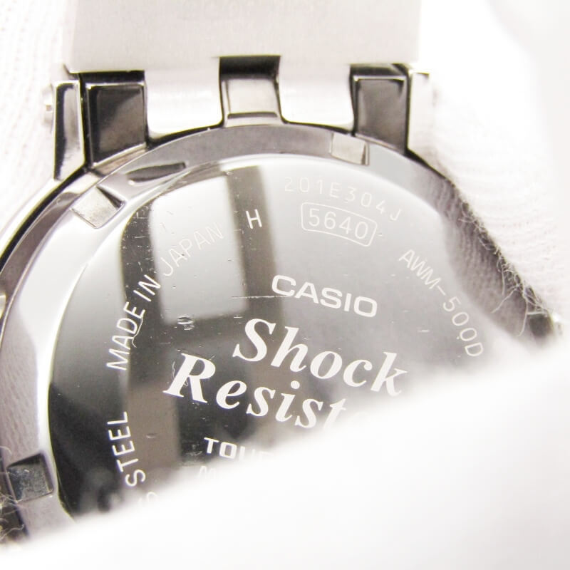 商品説明 | CASIO G-SHOCKのAWM-500D。G-SHOCK初のアナログ・デジタルモデルをフルメタル化したAWM-500シリーズ。スタイリッシュなフェイスデザインでデイリー使いにお薦めです。 |