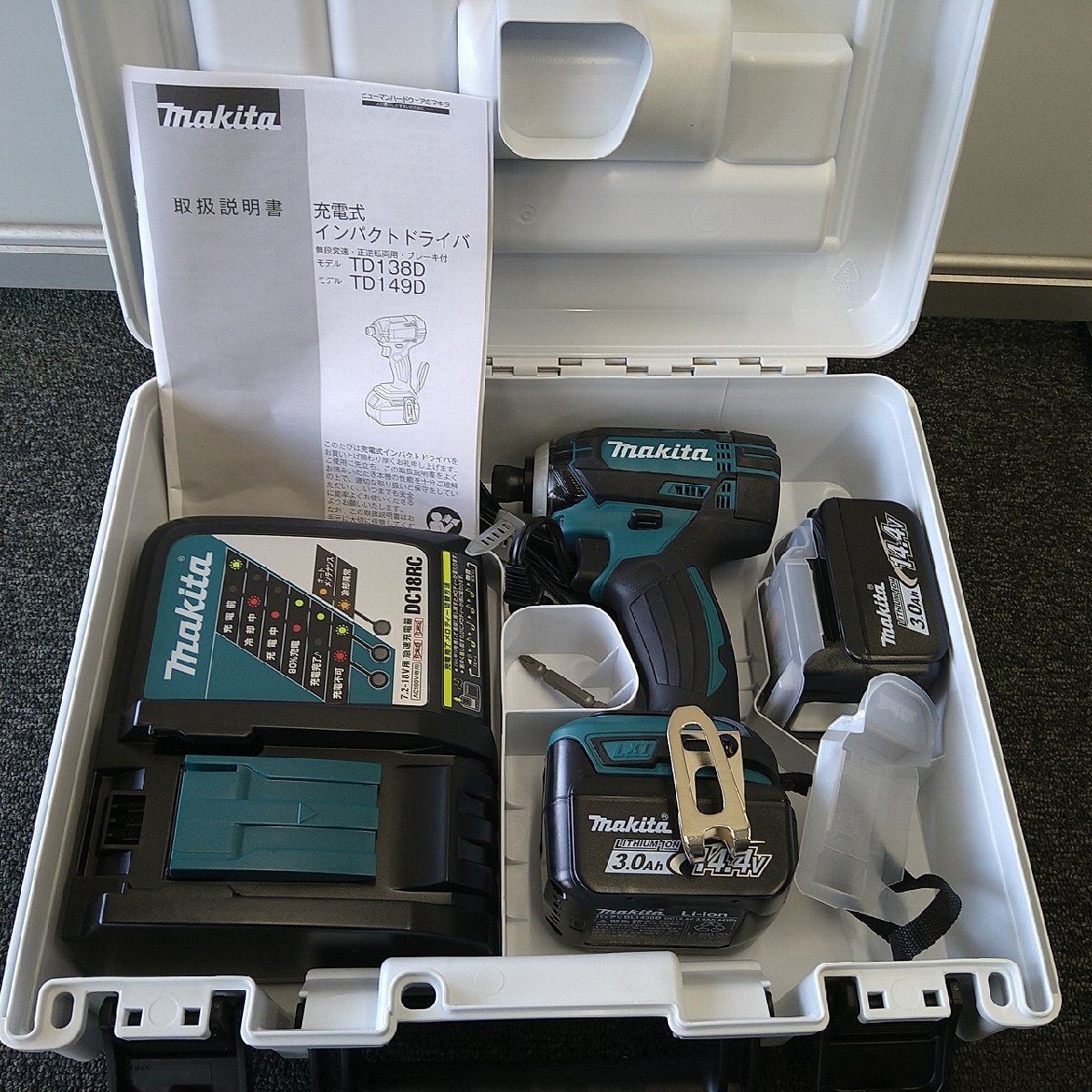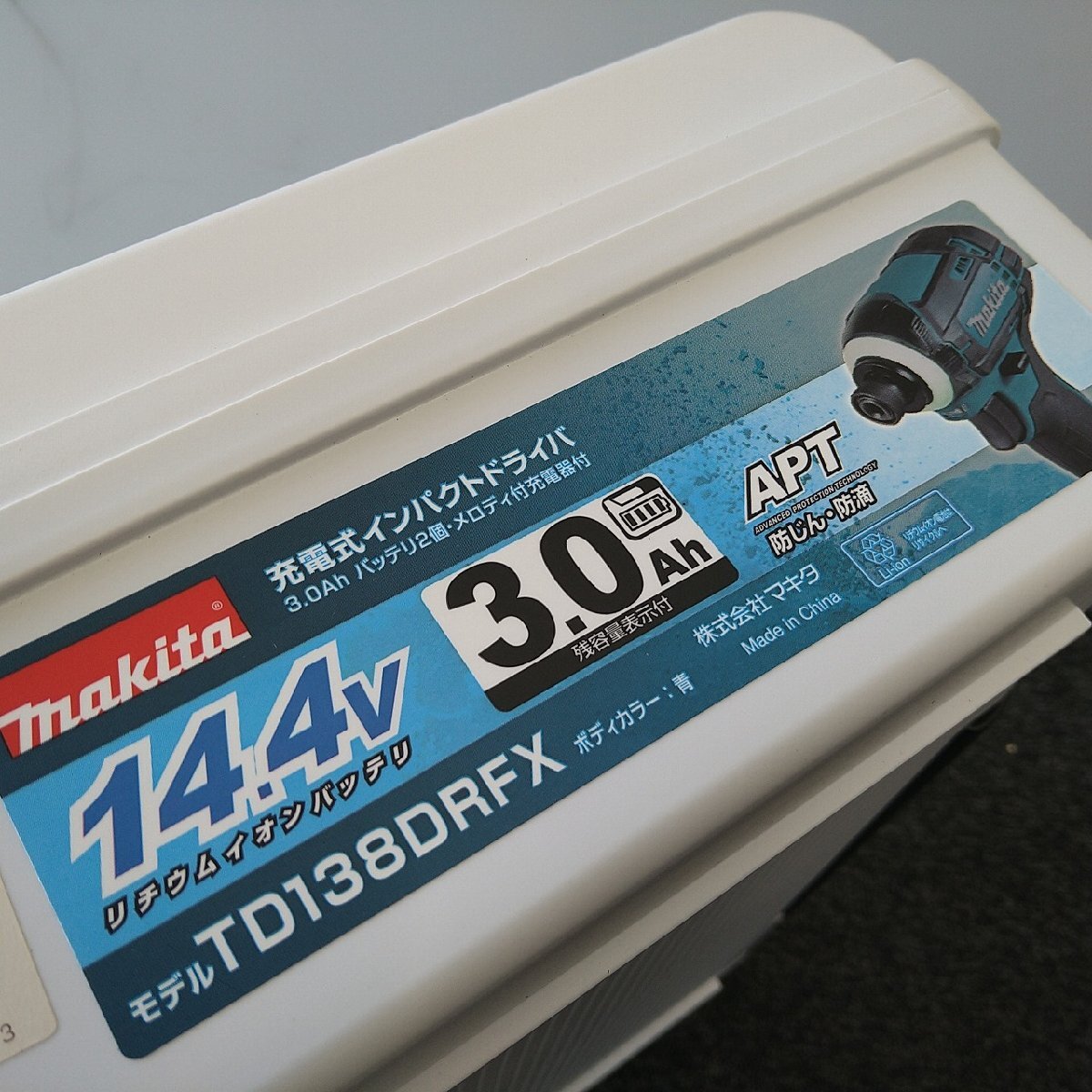 $未使用【 Makita マキタ 充電式インパクトドライバ TD138DRFX ブルー 14.4V バッテリー・充電器 ケース入り フルセット電動工具 】KH15630