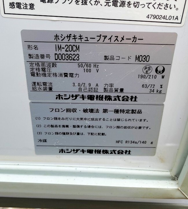 | 製品名 AA-003 業務用 ホシザキ 製氷機 キューブアイスメーカー IM-20CM 100V W450×D450×H625 店舗用品 中古 厨房 |