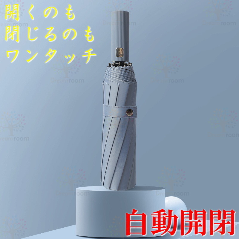 話題の 自動開閉 ワンタッチ 折り畳み傘 大きめ 105cm12本骨 【F-266 ブルー】 軽量 晴雨兼用 日傘 雨傘 梅雨 大きいサイズ