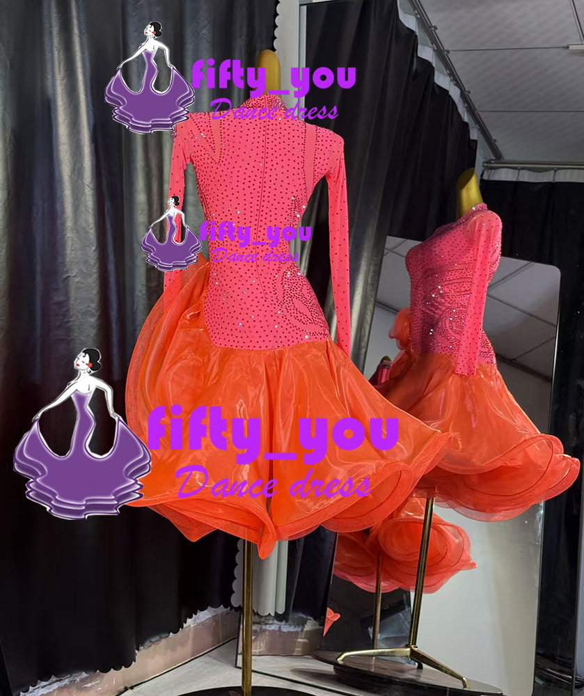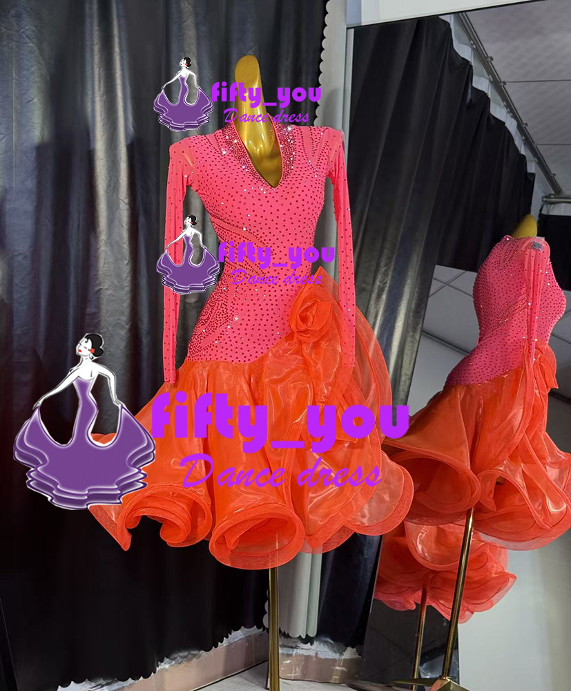 新品fifty_you レディース社交ダンス衣装 競技ドレス セミオーダー ラテンドレス ゴージャスストーン飾り ボリューム感があるスカート