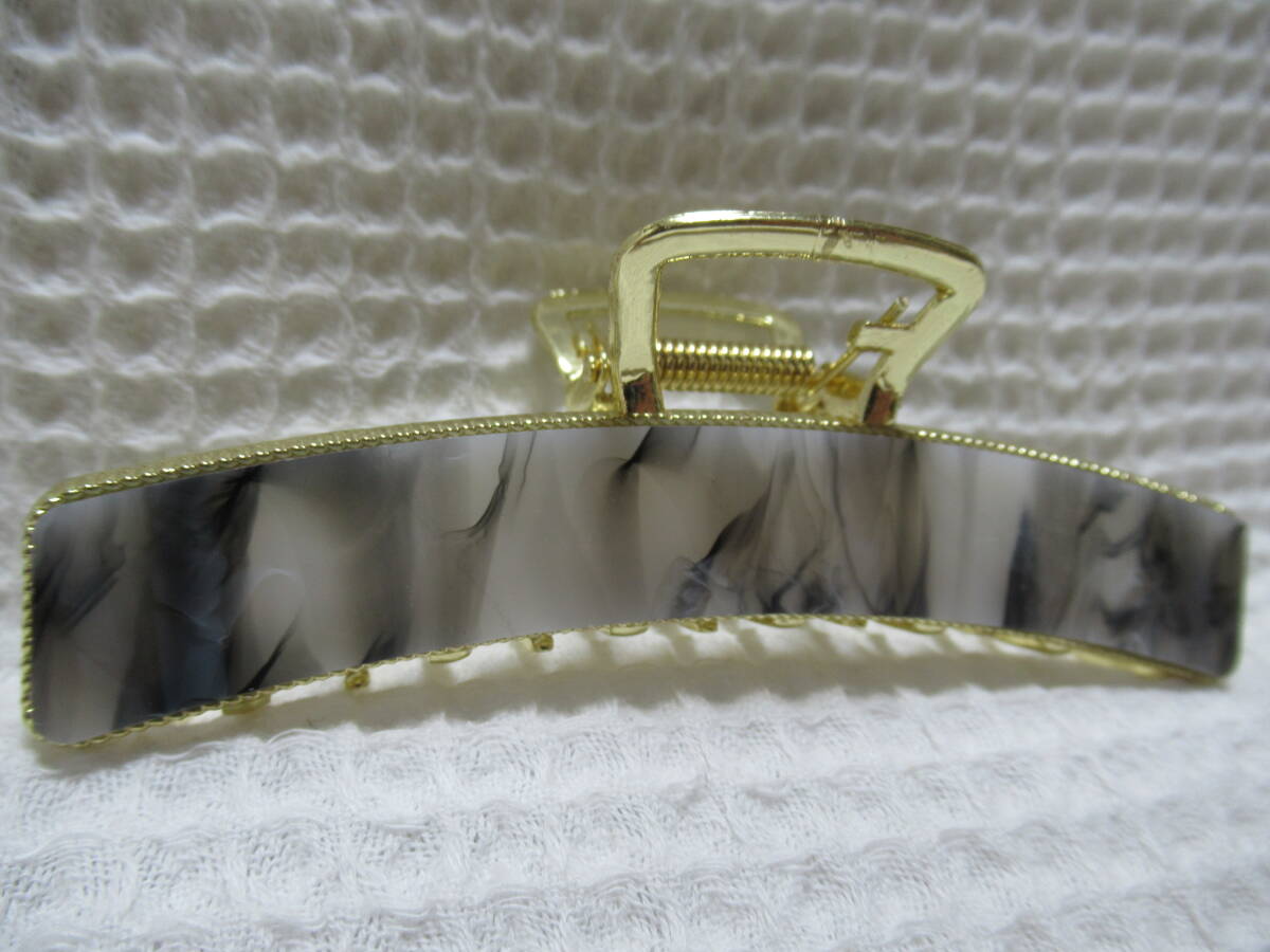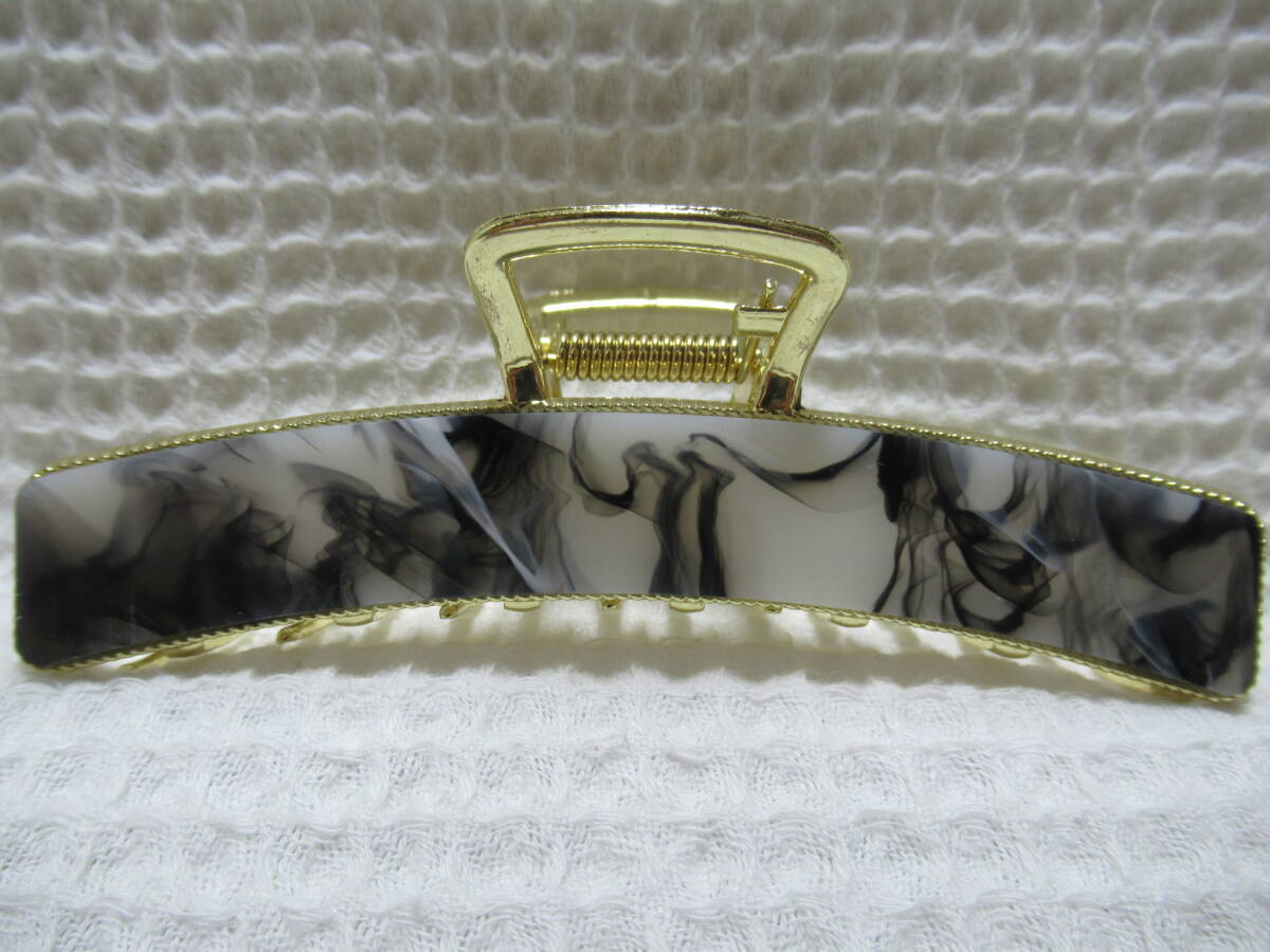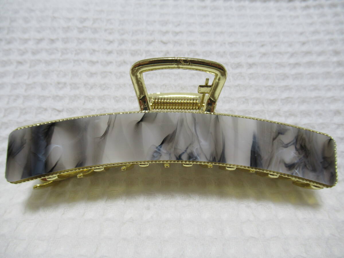 アクリル系付き ゴールドメタル細い角型バンスクリップ ブラック・ホワイト系 少々難アリ