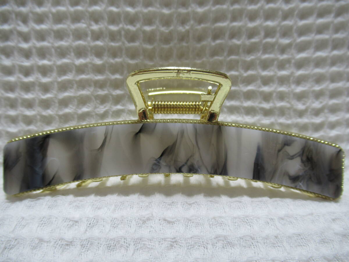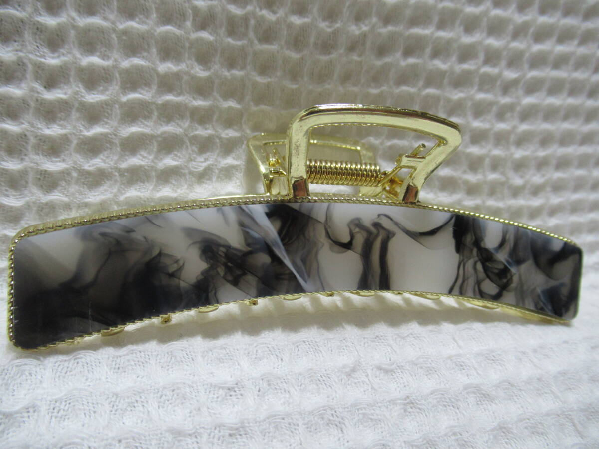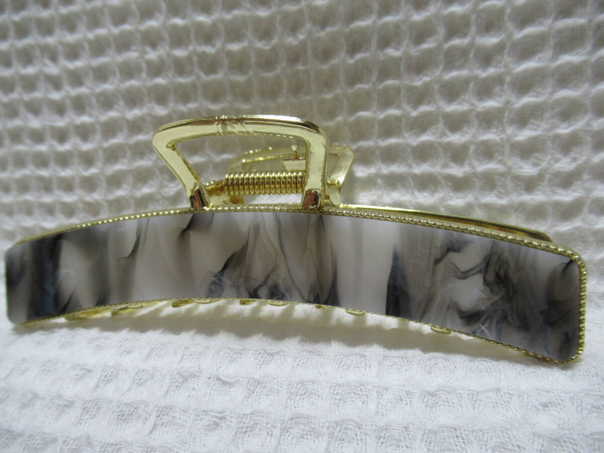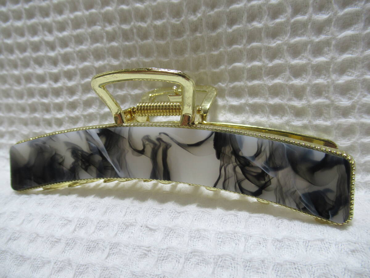 アクリル系付き ゴールドメタル細い角型バンスクリップ ブラック・ホワイト系 少々難アリ