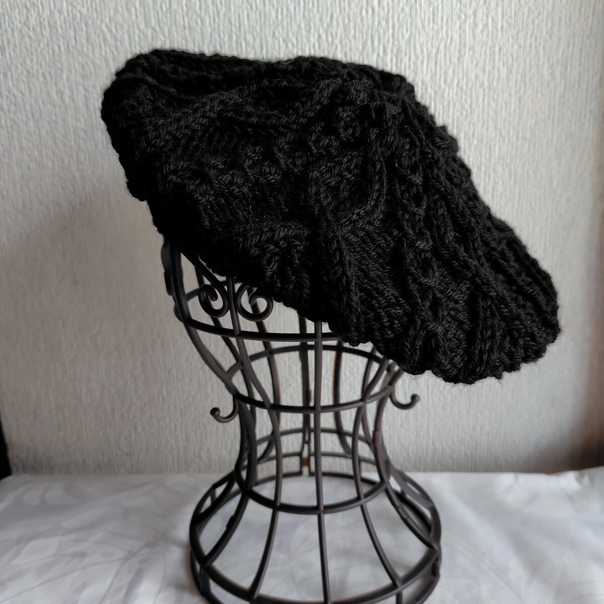 商品名 : アラン模様手編みニットベレー帽 レディース