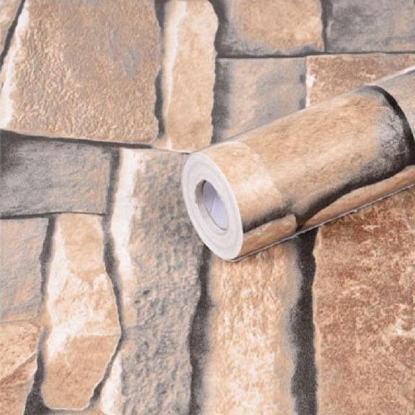 送料込 3Dブリック調 レンガ B136 シックブラウン 10m ストーン 壁紙 北欧 インテリア はがせるシール DIY ウォールペーパー 糊付き