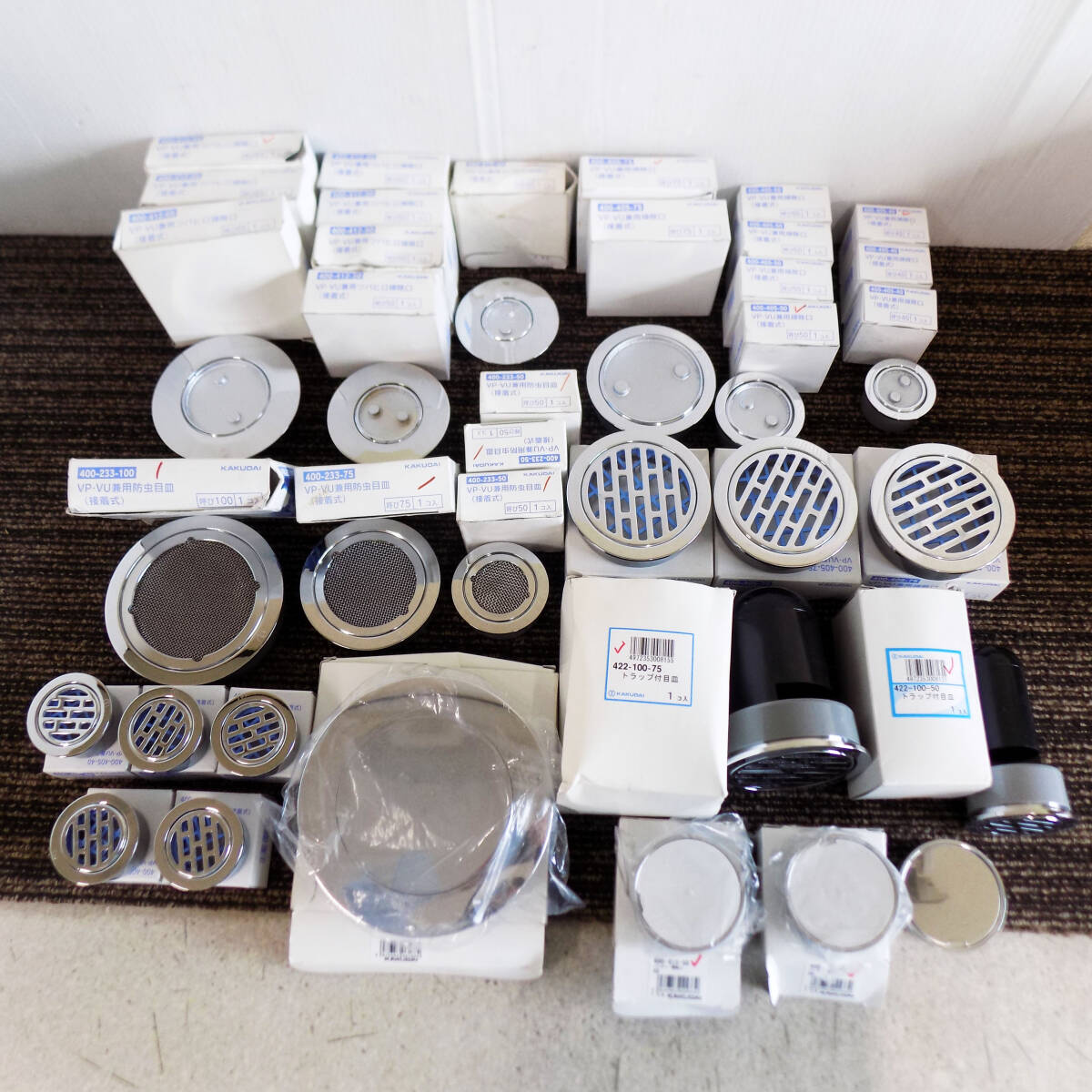 ●未使用 保管品 まとめて! カクダイ 水道部材 VP・VU兼用 排水 目皿 防虫目皿 掃除口 ハンディー ツバヒロ掃除口 ワン付トラップ目皿