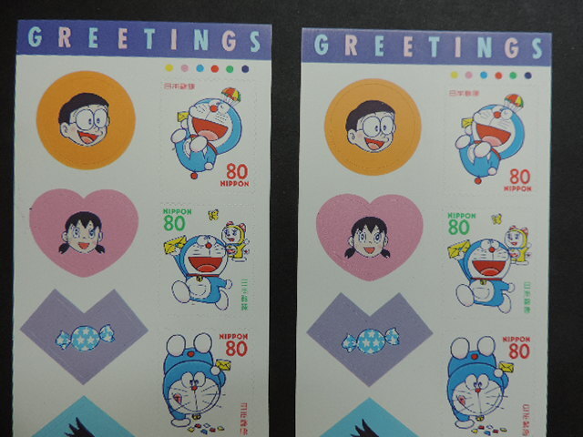 ★ドラえもん グリーティング切手★ 1997年 80円切手×5枚×2シート 800円分 新品・未使用