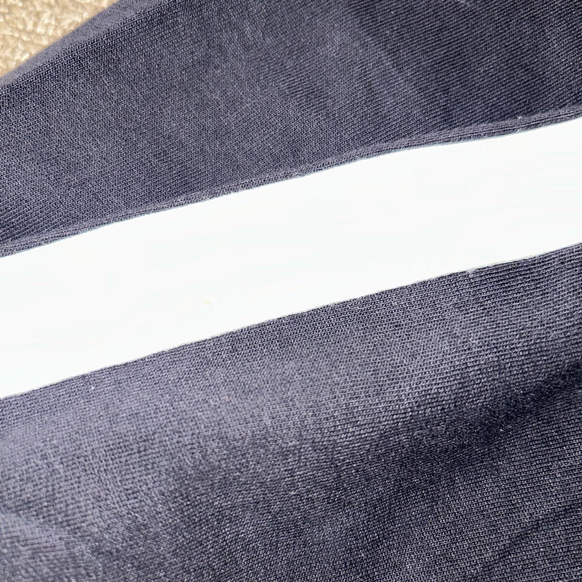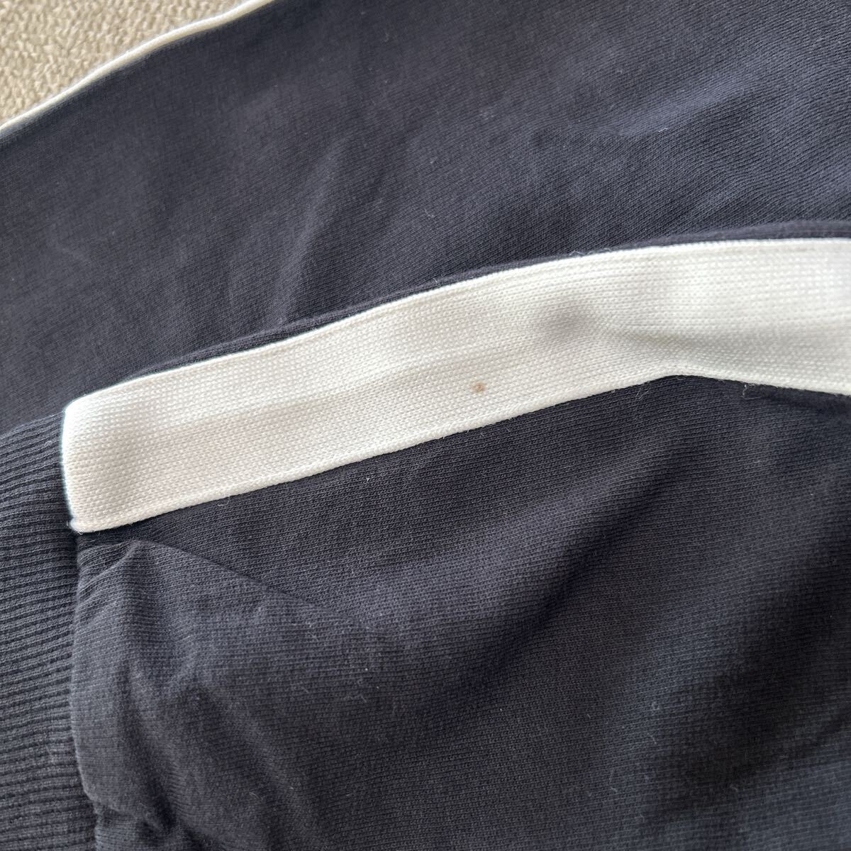 袖の白いラインに薄いシミが見られます。