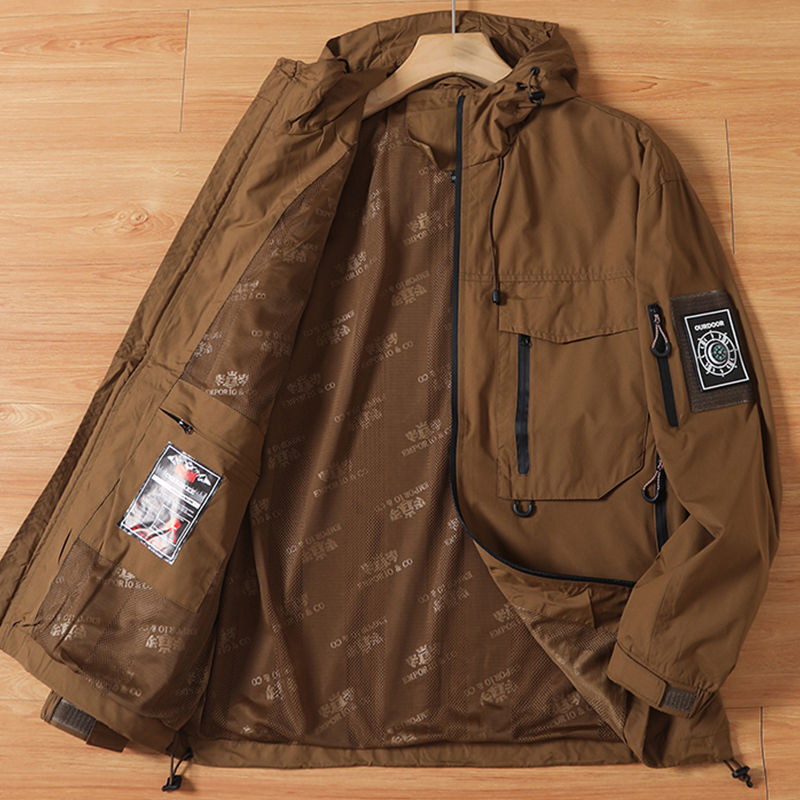 Y304-2XL ブラック 新品 ジャケット マウンテンパーカー 秋 防寒 防風 通気 ストレッチ フード付き アウトドア アウター メンズ カジュアル