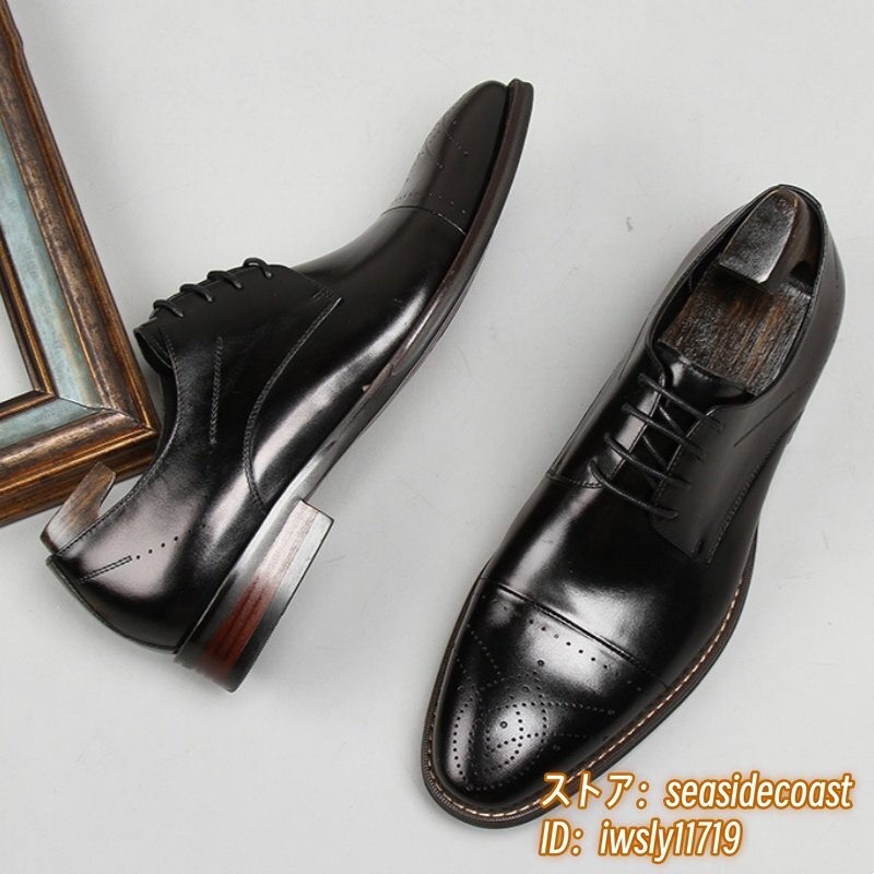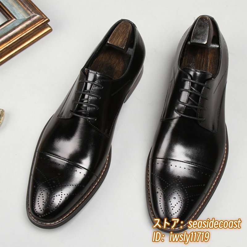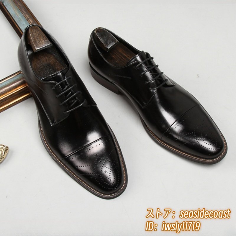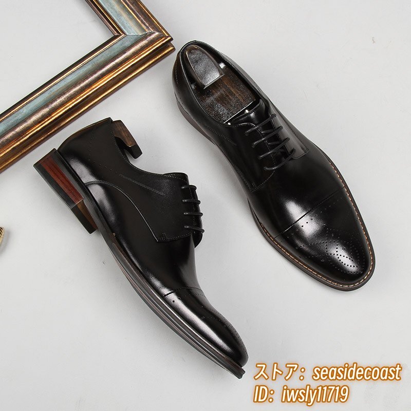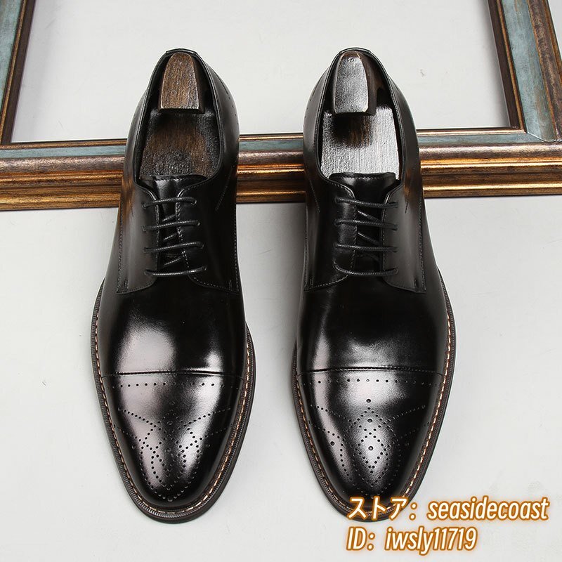 定価9万超■最高級 ビジネスシューズ 本革 レザーシューズ 職人手作り 彫り 紳士靴 超希少 牛革 フォーマル イギリス風 ブラック 27.0cm