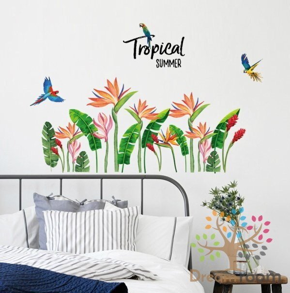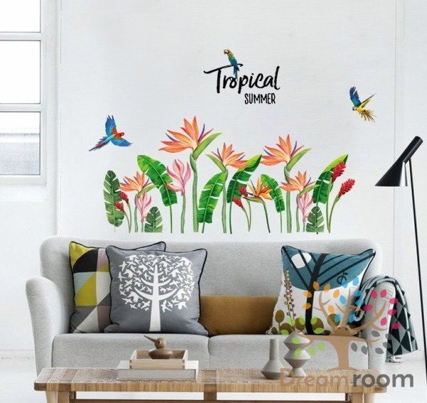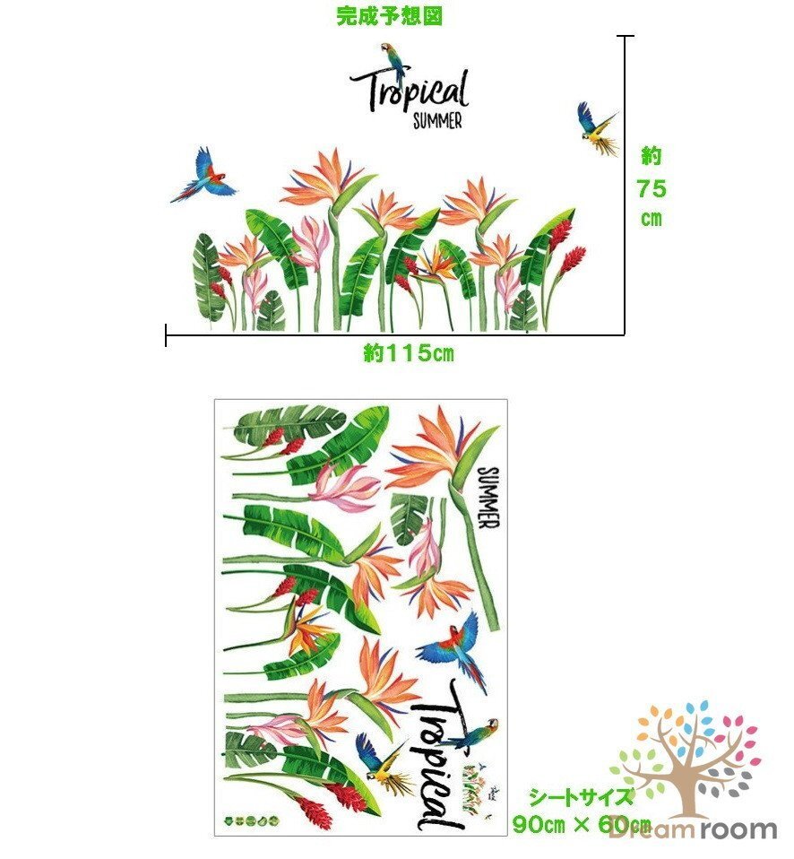 1スタ☆南国 トロピカル リーフ & フラワー 葉っぱ 花 デカール ウォールステッカー 【C827】インテリアステッカー はがせるシール