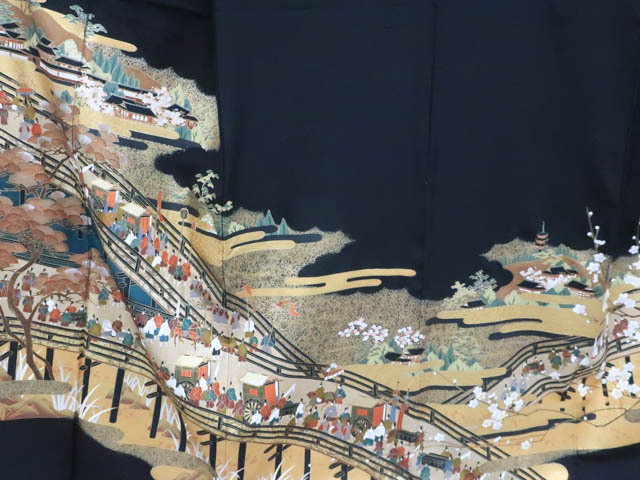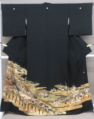 リサイクル商品のため、胴裏にSB汚れがございますがご着用いただけると存じます。 地色は 黒です。 1枚目の画像が近いお色かと思われます。 素材は正絹です。 |