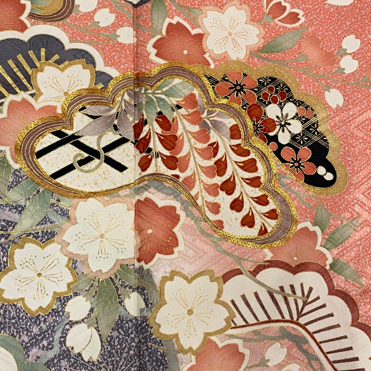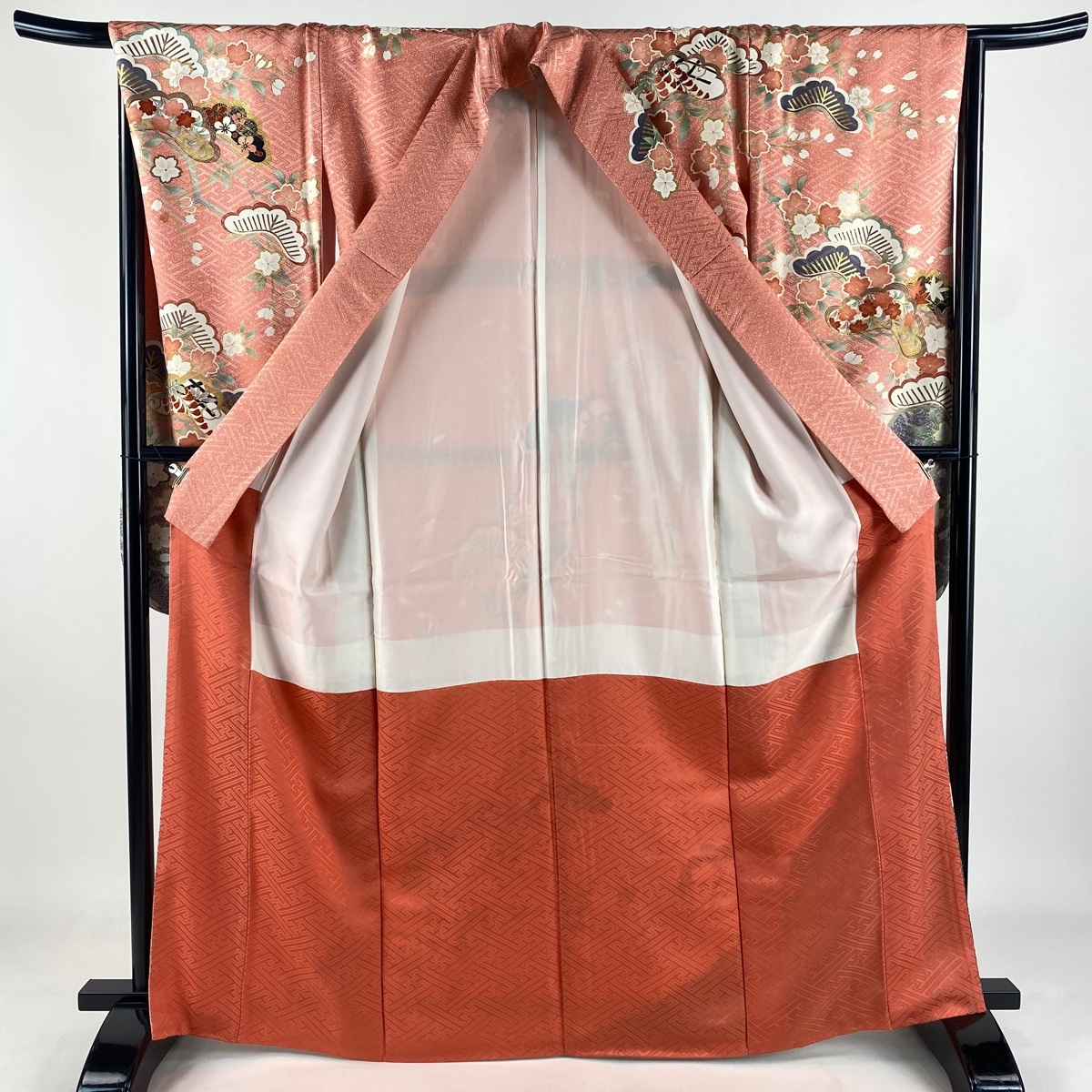 | 振袖 美品 秀品 松 桜 金糸 金彩 ピンク 袷 身丈165 裄丈67.5 L 正絹 【中古】 |